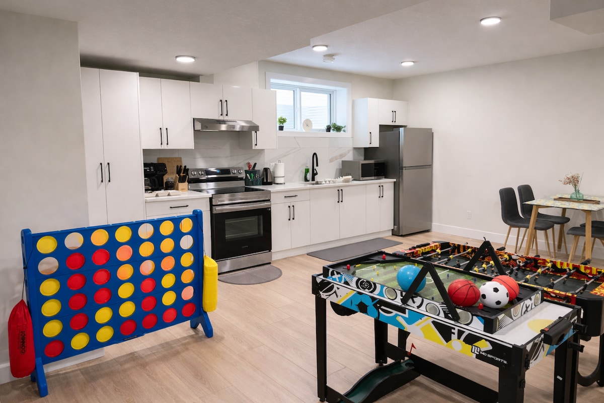 Welcome to your private home-away-from-home—spacious, comfy, and fully equipped for your stay in Edmonton! ✓ No long checkout chore list—we do the cleaning! ✓ 2-bedroom private suite ✓ Separate entrance ✓ Full kitchen, bath, living/dining ✓ Free in-suite laundry ✓ Air hockey table ✓ 15 min to downtown ✓ 5 min to Sherwood Park ✓ Easy access to Yellowhead & Henday ✓ 10 min to Commonwealth Stadium ✓ 1 block to river valley & Rundle Park ✓ Soundproofed ✓ Fast Wi-Fi ✓ Extra blankets & towels