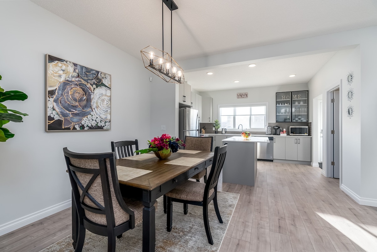 Experience Edmonton’s top-rated "Jungle Escape!" You’ll love this blend of playful vibes and serious comfort. 🌿 Themed Decor, King, Queen & Bunks 🚗 Secure Double Garage Parking 🎮 PS4, Foosball, Games, Books, & Toys 🍼 Crib, Baby Monitor, & High Chairs 🍳 Stocked Kitchen, Coffee & Fast WiFi Quiet, safe, and minutes from freeways & dining. Perfect for families seeking fun or work crews needing a pristine, functional base. Book your private oasis now!