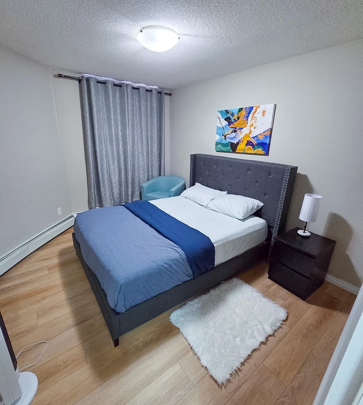 Welcome Home! This is a very clean and comfortable 1 bedroom unit. Built in 2015, this entire apt has all the bells & whistles! On the 2nd floor in a well established neighbourhood in NW Edmonton, this place can accommodate 3 guests (2 in master, 1 on pullout). Underground heated parking included. Conveniently located near grocery stores, restaurants, gas stations and big box stores.