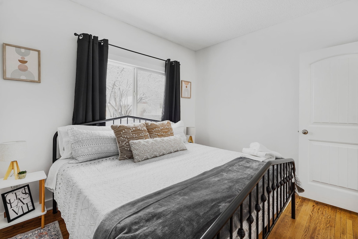 The Cozy Fern is a quiet and comfortable 2 bedroom home close to Downtown New for 2023: Air Conditioning! The home features lots of natural light, a fireplace, spacious bedrooms & a fully equipped kitchen. Both bedrooms have a comfortable queen bed, ensuite bathroom, black out blinds, walk in closet & TV. FREE street parking. Amazing Location! Close to Downtown, Rogers Center, Commonwealth Stadium, Royal Alexandra Hospital & NAIT No excessive noise as there are tenants in the basement unit