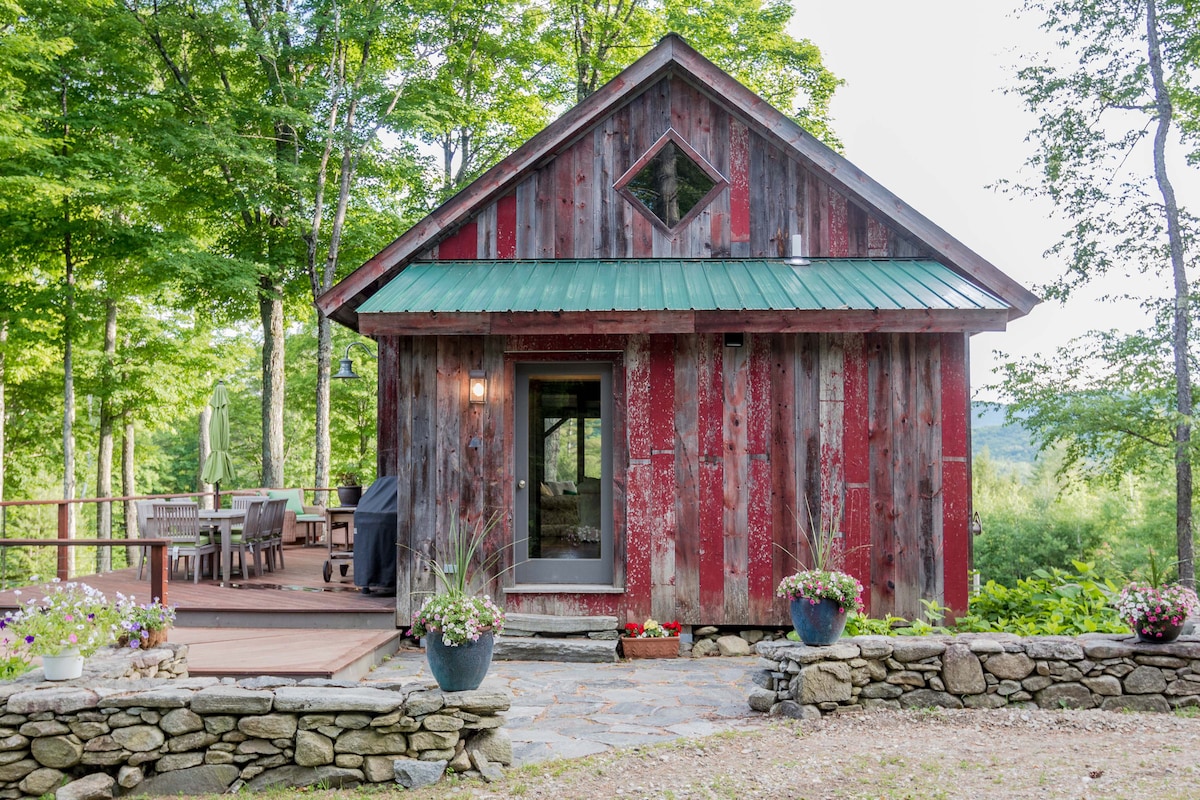 The beautiful & brand new Riverbed Treehouse with private sauna and a stunning new hot tub! Views all day long and wildly awesome sunsets!! Stratton mountain is right at your toes with a babbling brook turned raging river in the Spring! Beautiful woods & trails to explore. Stunning ridge line off the ski trails of Magic Mnt!! Close to town for quick shopping & coffee shops! Xcountry ski or snowshoe or walk our groomed trails!! FAST WiFi, nature lovers & a birdwatchers paradise!! @bentapplefarm