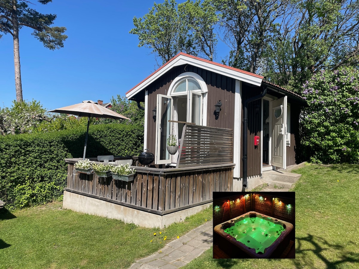 Charming 130-year-old cottage (90 m²) with a modern yet cosy feel. Two renowned spas (Yasuragi & Skepparholmen) within walking distance. Bottom floor: kitchen and dining area with classic wood stove, living room and bathroom. Your own garden and spacious wooden deck—perfect for sunbathing or BBQs. Set in a beautiful area with a crystal-clear lake for bathing just 200 m away, with a nature reserve surrounding it. Sea dock ~700 m. 30 minutes to Stockholm by Waxholm boat, bus or car.