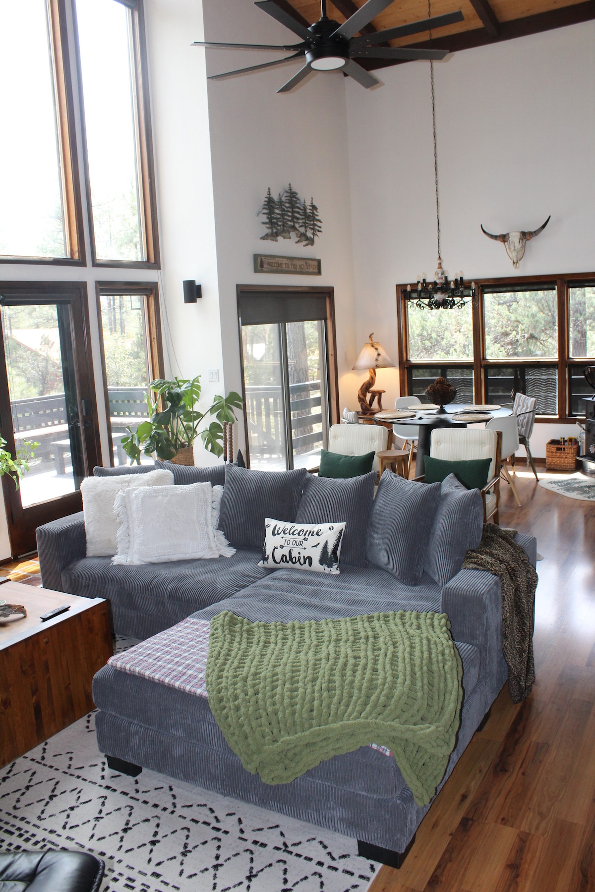 Spend days exploring Tonto Natural Bridge State Park or the Mogollon Rim! 🌄 Then head back to your cabin, open the garage door in the dining area, and enjoy a beautiful Arizona sunset. This Payson cabin is located directly on the East Verde River and you will hear the soothing flow of water from the deck. Step directly onto hiking trails or go fishing from your backyard. 🐟 Vinyl record player and cozy interior. This peaceful retreat will be the perfect spot to get some much-needed relaxation.