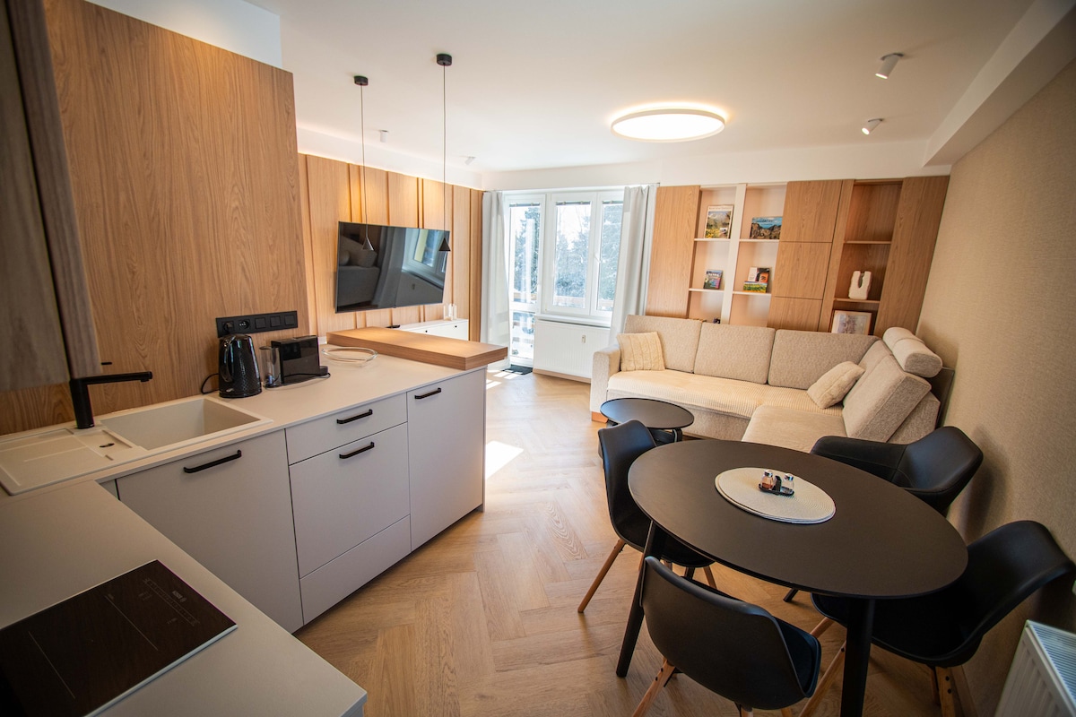 Cozy apartment in a 4**** star hotel in top resort of High Tatras in Slovakia (altitude 1300masl). Your own kitchen, bathroom, balcony and garage in the basement. You can use hotel service, restaurant etc. if you wish.