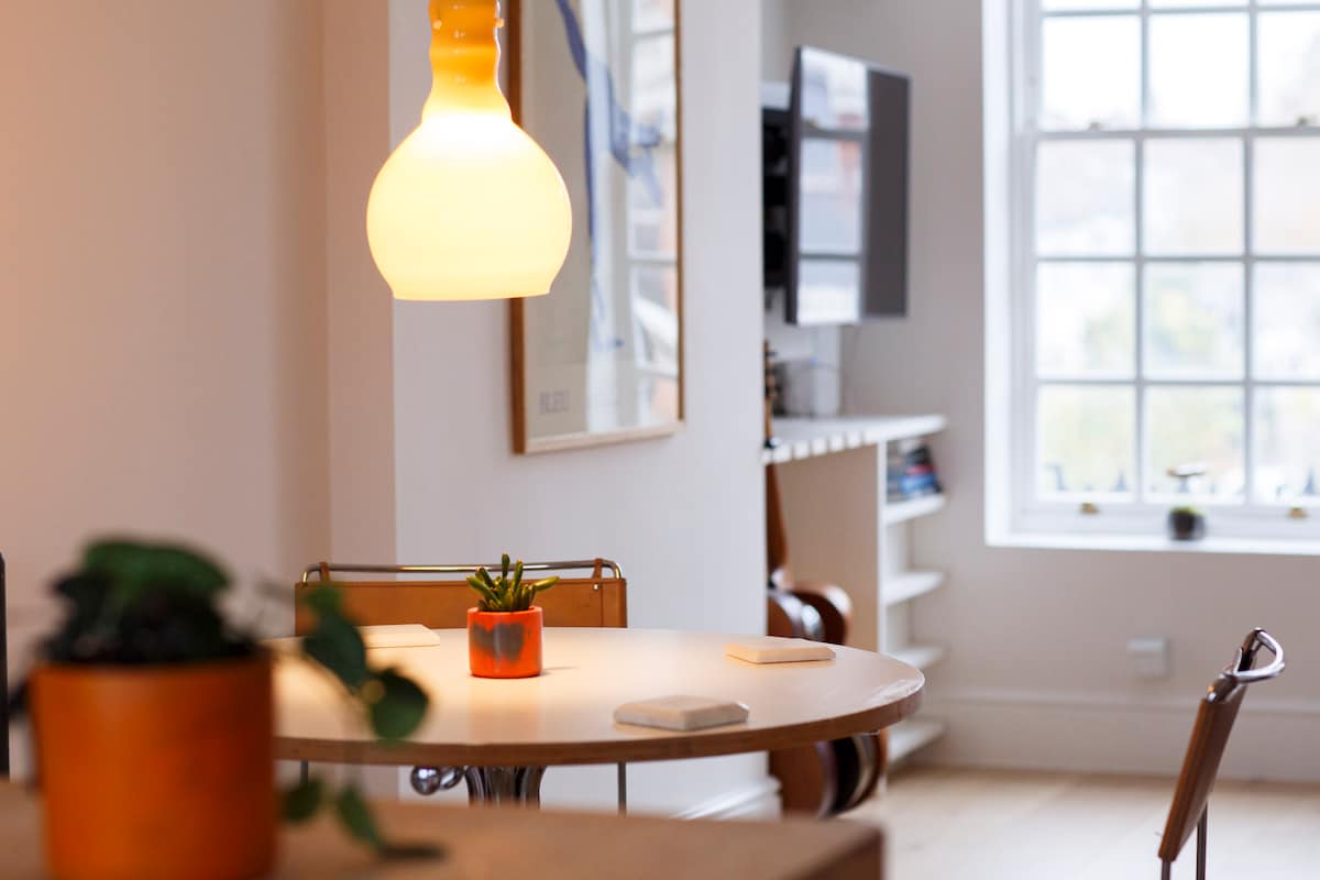 Entire 1 bed flat, styled on Vintage Industrial, set in a private Victorian gated yard. Stunning city views from the street. A quiet, fully equipped space, right next to Crystal Palace Triangle which has 50+ bars, restaurants & shops with luxury Everyman Cinema & bar. 9mins walk to Over Ground Tube & Rail. A Dinosaur Park, Sports Centre & Horniman Museum are minutes away. Luxury UK King size bed. Great for fun or work. Please ask if you require a longer stay than days visible on the calendar.