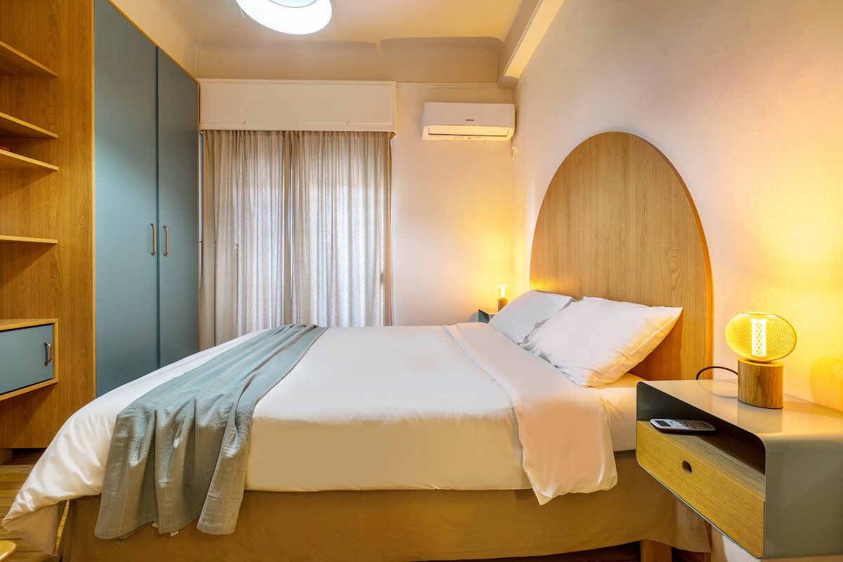 A stylish apartment in Athens, owned and designed by Neta Dror, a designer and artist who has infused the space with her personal vision. This apartment has a unique space that combines old and new elements. The apartment has a large living room with a comfortable sofa, a dining table and a kitchen with all the amenities. The bedroom has a comfortable double bed and a hidden bathroom that surprises and delights. This apartment is more than just a place to sleep, it is a place to experience.