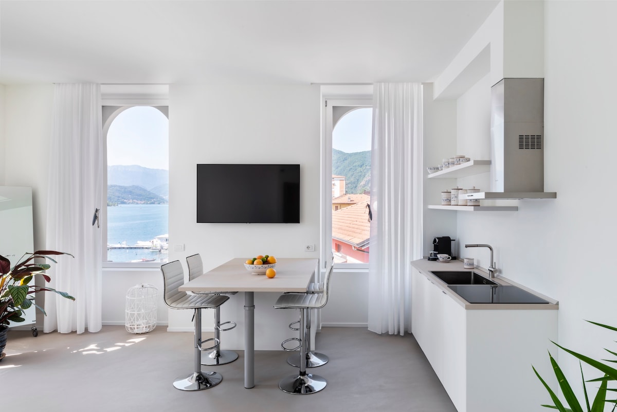 La suite PORTO 7 è stata costruita per offrire ai propri ospiti un esperienza unica, un vero contatto con il lago: meravigliose finestre permettono una vista mozzafiato sul lago in continuo movimento, doccia esperienziale a vostra disposizione. Una posizione unica: direttamente sulle sponde lago ma al contempo nel centro del borgo. È cosi garantito un comodo accesso a tutti i servizi primari: panetteria, gelateria, edicola, bar e ristoranti tutti a pochi metri.