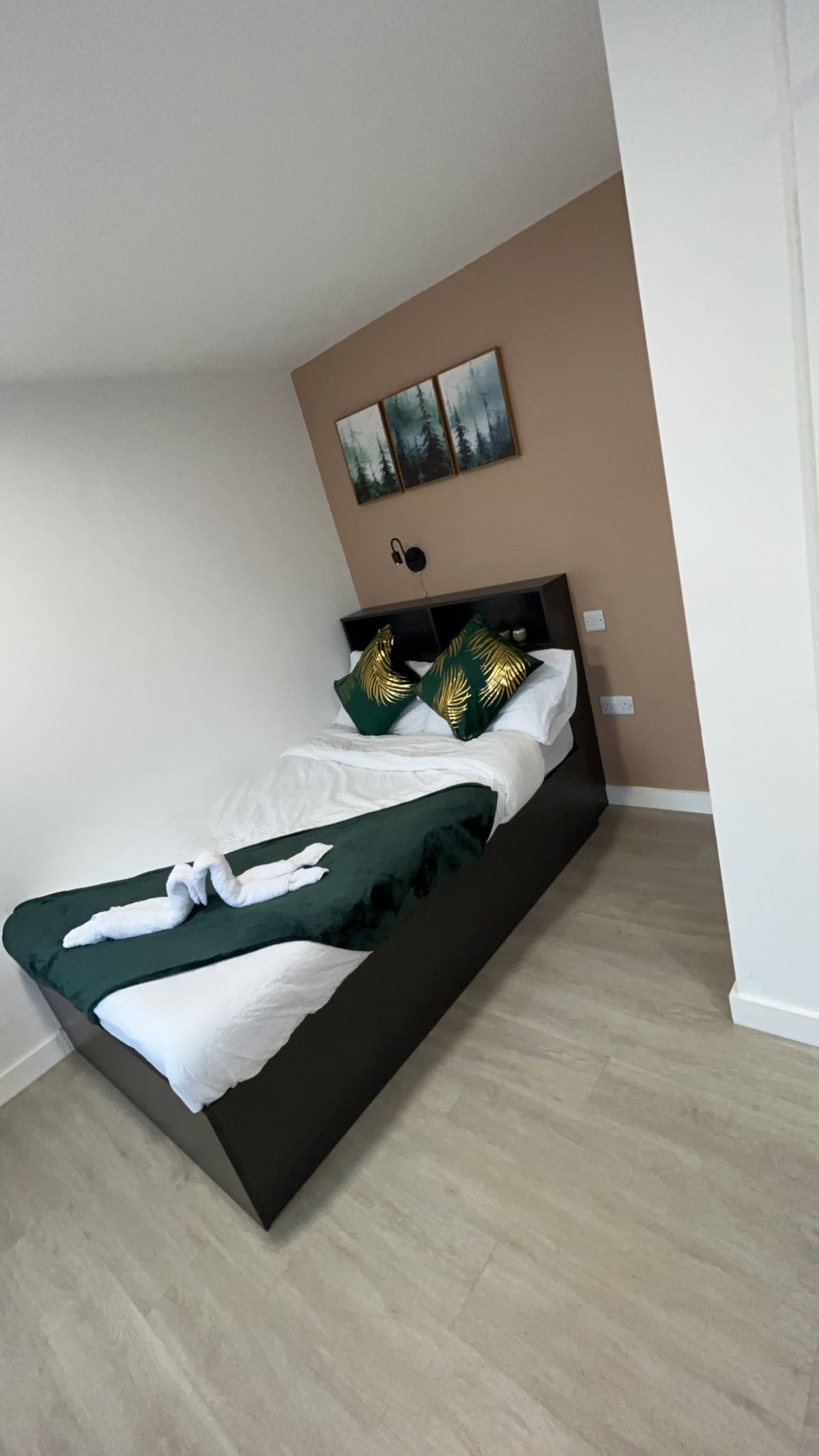 A walking distance to Wigan Town Centre & Royal Albert Edward Infirmary. *Discounts on long term bookings*. Lullaby Lettings has designed this cosy ground floor apt with our guests in mind. It has free high speed Wi-Fi, contemporary furniture, flat screen TV, free private parking, fully equipped kitchen with everything needed from a few days away up to a longer stay; a genuine “home from home". A walk away from famous Haigh Hall Woodland Park.