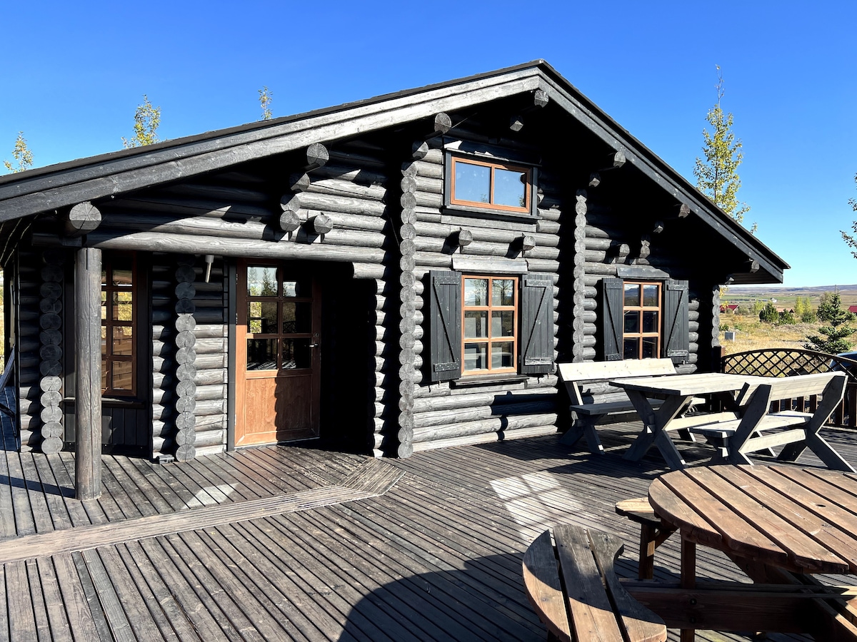 Beautiful Luxury cabin located only 1 min drive from world-famous Geysir and it is also a short drive to Gullfoss The cabin is located on a large private ground where you can enjoy Strokkur (the only active Geysir in Iceland) from the cabin. The space 3 bedrooms. The living room and the kitchen make an open area with a high ceiling with a comfortable lounge area with fireplace. All bed linen, towels, soap etc is provided. Free wireless internet available as well.