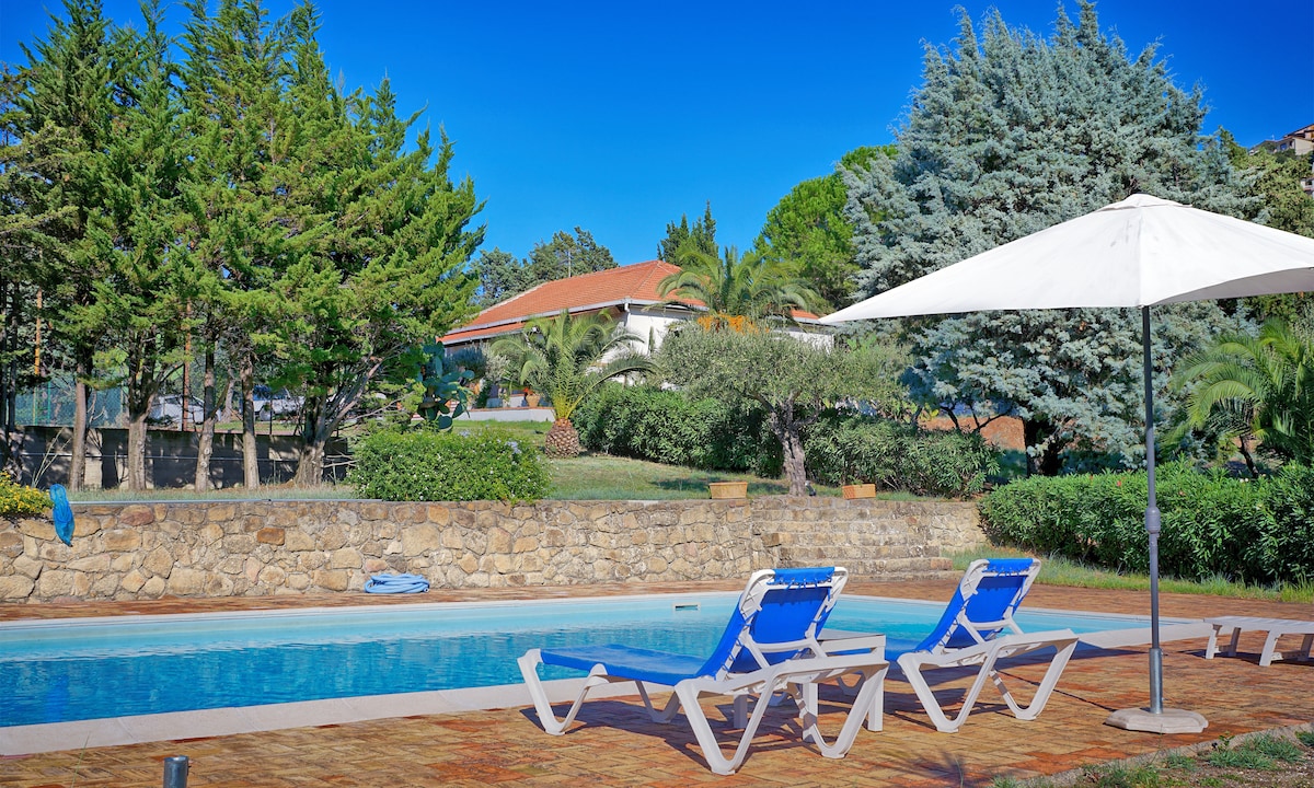 The house has magnificent uninterrupted views over the ocean, including from the double bedroom, the two covered outdoor terraces and the front garden. It is bordered by grape vines on one side, olive trees to the other, and the ocean in front.