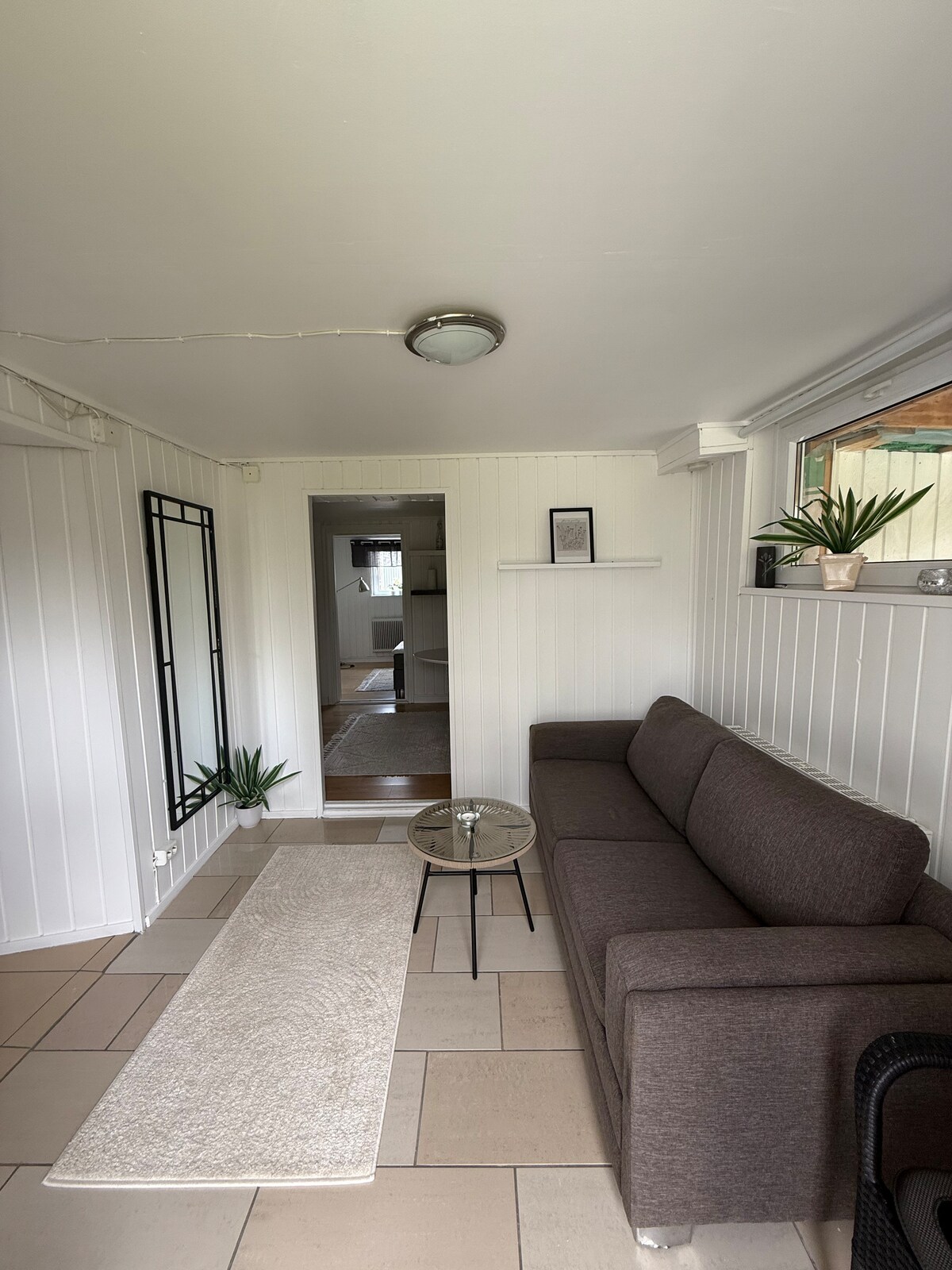 Mysig och ljus lägenhet i del av villa ca 30 kvm med egen ingång. Soligt läge. Lägenheten har pentry med två kokplattor, kyl m frysfack, mikro, vattenkokare, brödrost och kaffebryggare. Egen wc/dusch, handfat, handdukstork och tvättmaskin. Dubbelsäng och en bäddsoffa. Boendet passar bäst för 1-2 vuxna eller 2 vuxna med 2 barn. TV, uteplats med gasolgrill på sommaren. En parkering finns. Wi-Fi och chromecast finns Täcken och kuddar finns. Sänglinne och städning ingår ej.