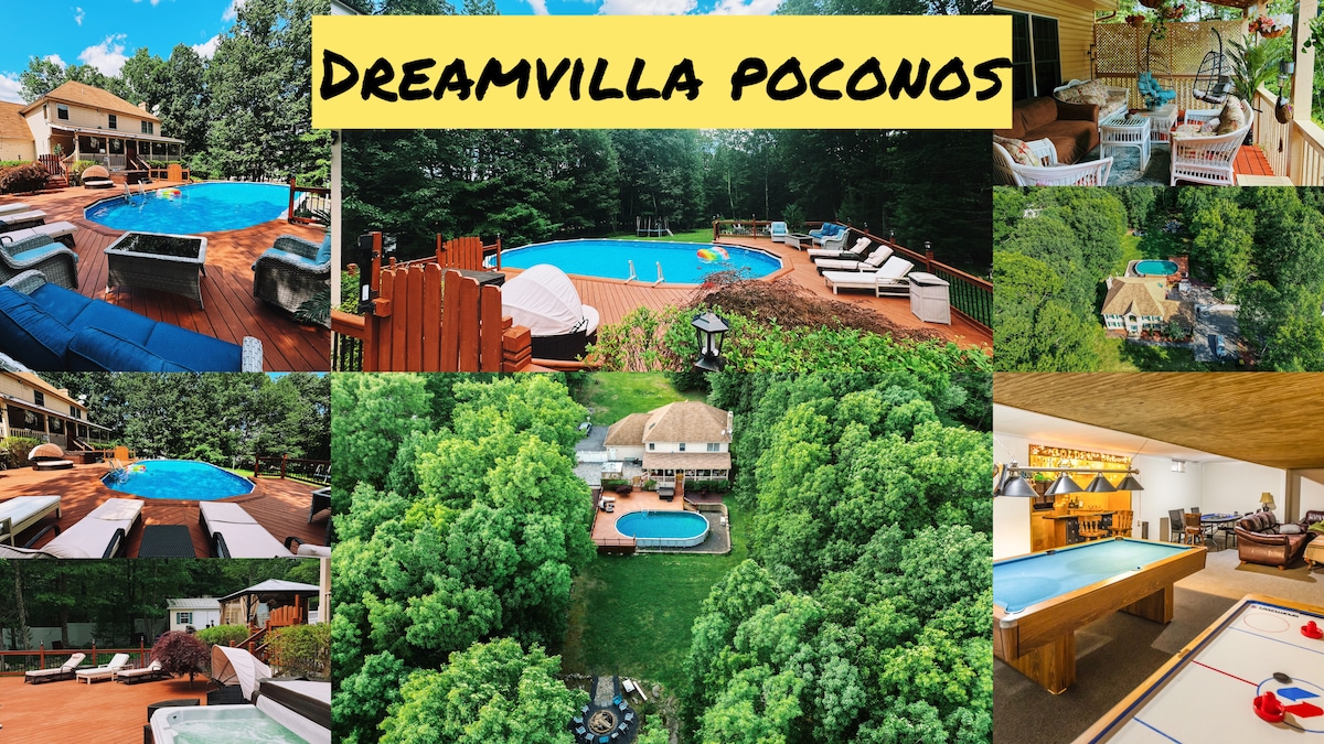 Welcome to the Poconos TREEHOUSE + SPA Getaway... Let us take your breath away by capturing beautiful memories during your stay. Surrounded by nature, the lake view sits on an uphill which allows you to enjoy the beautiful sunrise and sunset through our deck access giving it the TREEHOUSE effect... Immerse yourself in our 20 FT HEATED SWIM SPA!!!! Deck can also be used for BBQ days/nights. From our common areas, to outdoors, we also provide indoor entertainment and many more!
