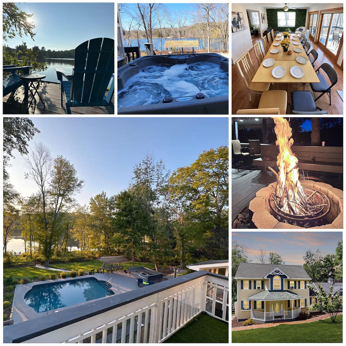 波科诺湖畔私人住宅。热水浴缸、游戏室