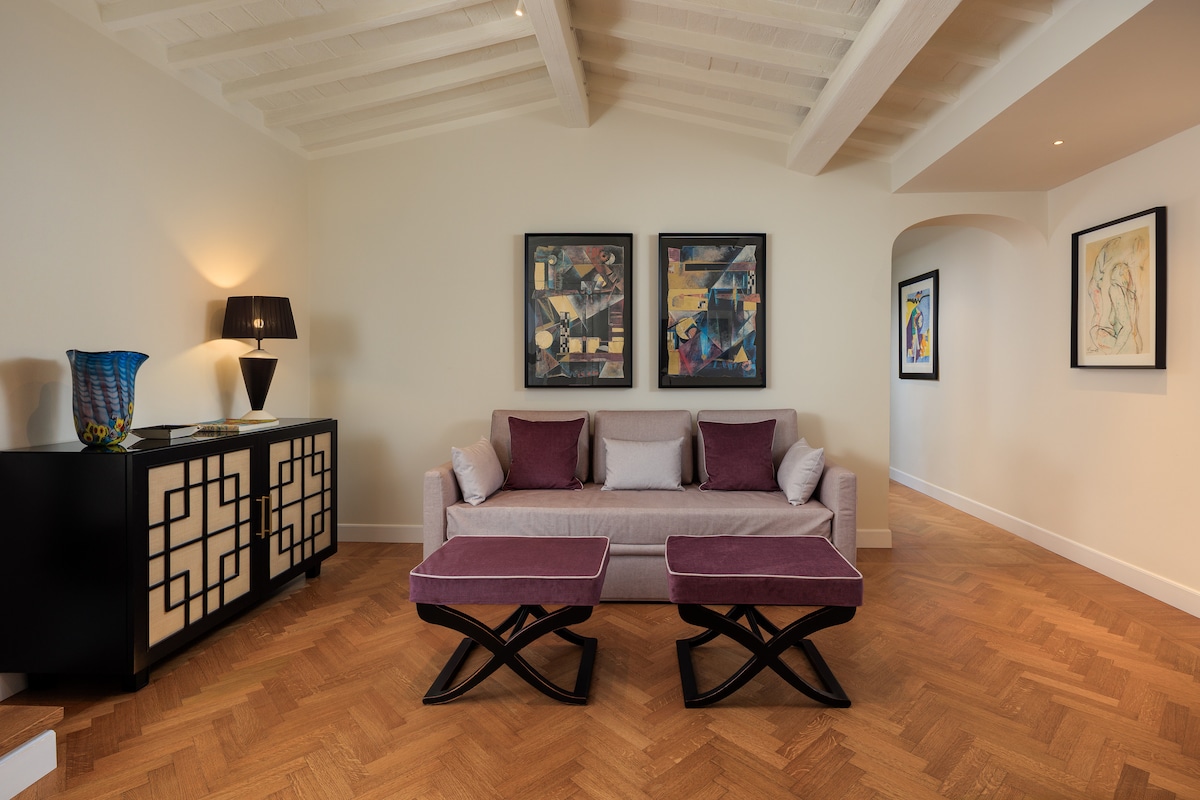 Exclusive and refined apartment on the second floor of a historic 16th-century building, in the heart of Florence. With exposed beams, parquet floors, and handcrafted Florentine furnishings, it combines historic charm with modern design, creating a warm and welcoming atmosphere. Ideal for couples, friends, or families, it offers a central location within walking distance of all the main attractions, from museums to historic squares.