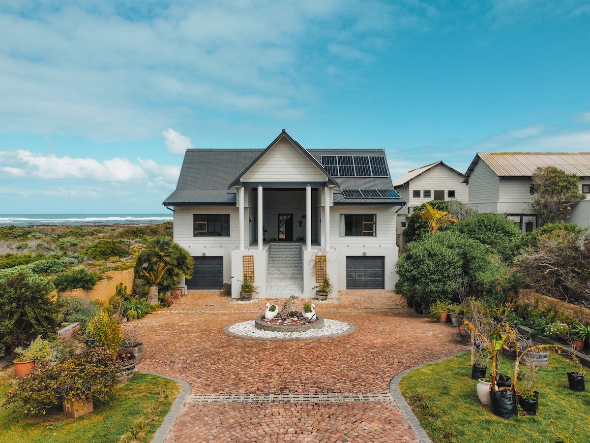 Experience modern comfort in this exceptional home perched on a prime spot within the coveted L’Agulhas Private Nature and Game Reserve. Relax in this distinctive retreat, a haven for nature enthusiasts. This private, contemporary residence provides a perfect home away from home, blending ocean and nature views while remaining conveniently close to shops, beaches, and the national park. Featuring a split-level design, which is ideal for remote working and general privacy within the house.