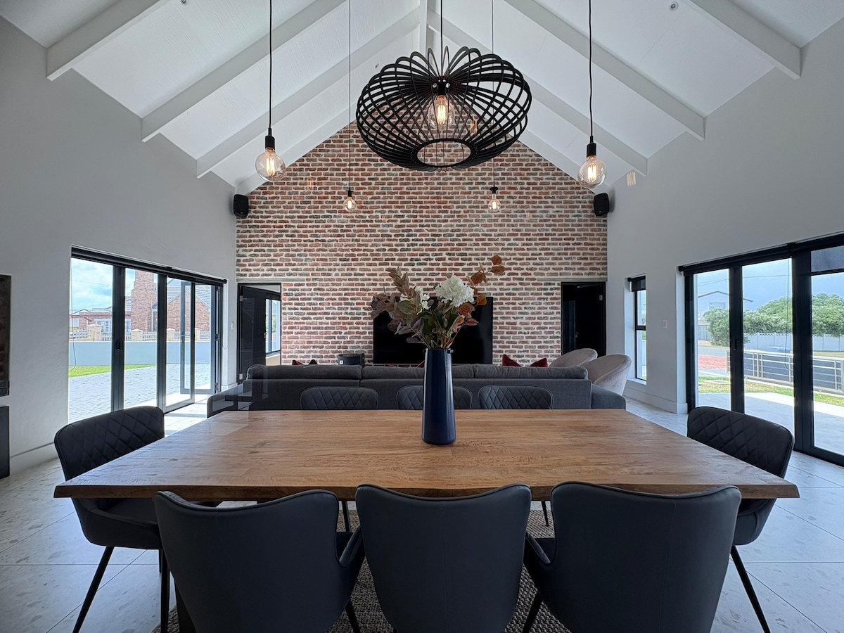 Beautifully decorated with rustic charm and modern comfort, this spacious home features raw-brick walls, open-truss ceilings, and an inviting open-plan layout. Enjoy year-round entertaining with an indoor braai area. The home offers four stylish bedrooms and three modern bathrooms (three en-suite), plus a cozy loft perfect for kids. Designed for comfort, relaxation, and unforgettable gatherings.