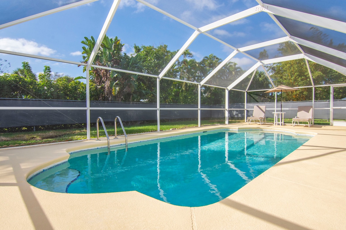 This is your instant "home away from home". The property is located just minutes from the beach! However the brand new salt water pool makes it easy to forget the beach is so close. There is outdoor seating in the sunshine, and also located in the screened in patio area, new privacy wood fenced back yard making it perfect for enjoying the outdoors . The landscaping is also amazing, with a beautiful 30 FT Bismarck palm outside. If you are a regular vacationer this will be your new vacation spot.