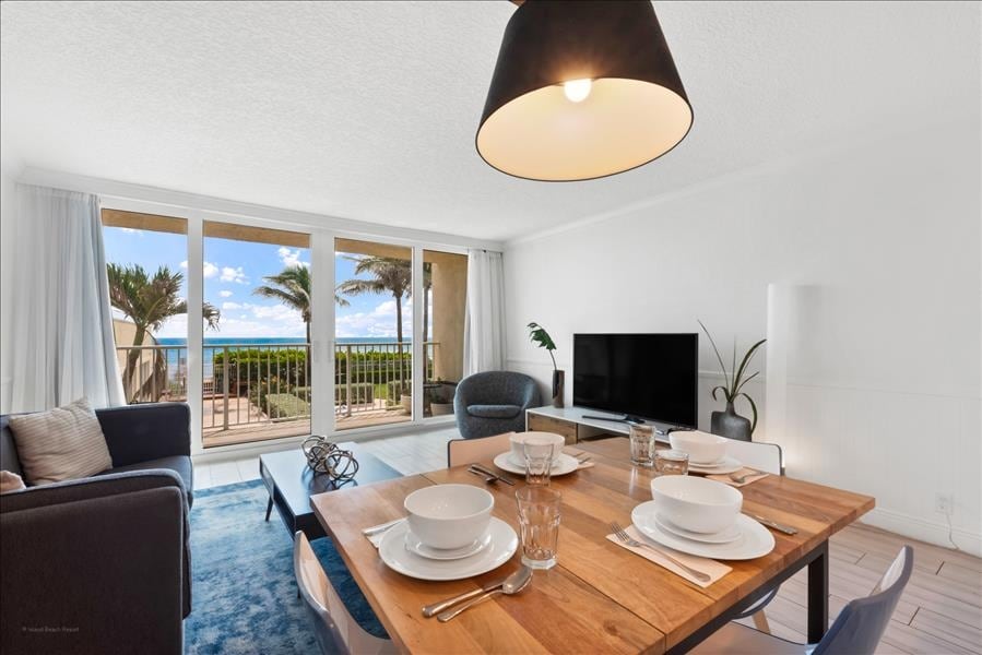 Immaculate condo with full ocean 180 degree ocean views. The condo sits on the beach just a few feet from the ocean in Indian River Plantation Resort with its own private pool and lounge area. Amenities include full gourmet kitchen, flat screen TV, premium bedding, elevator, pool, beach chairs and toys. Tiki bar next door and great restaurants nearby. We provide self check-in and Free WiFi.