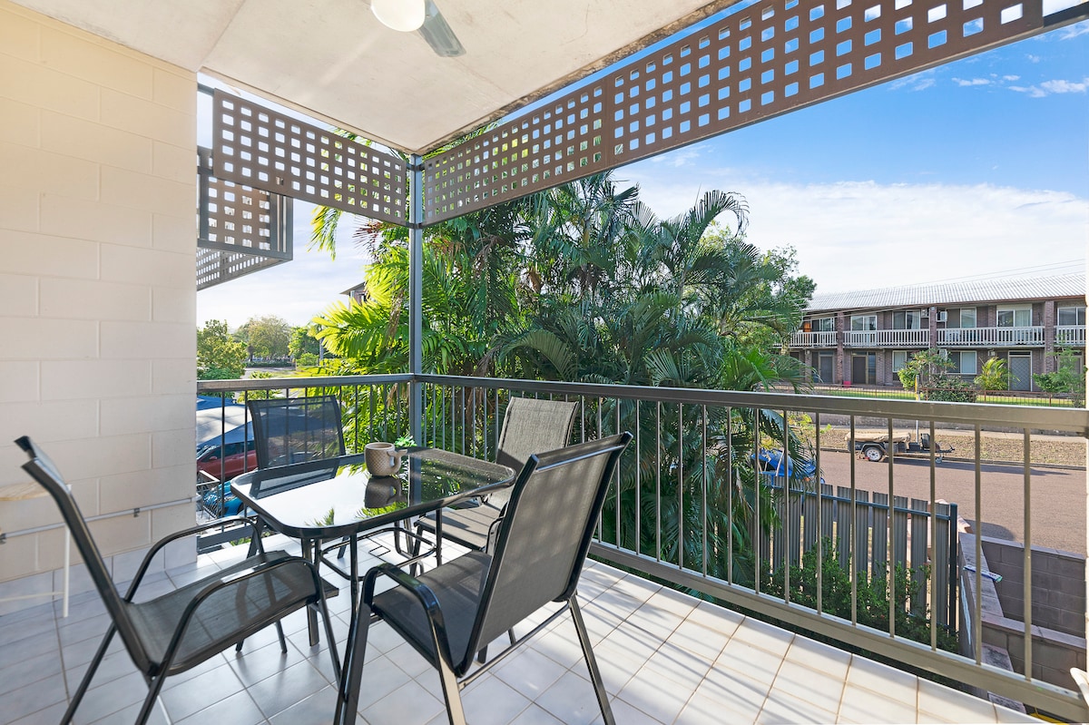 Welcome to your Darwin city getaway Modern one bedroom apartment features: -Bedroom, Queen bed, aircon & tv. -Seperate fully equipped kitchen -Seperate bathroom - Lounge,dining , study, tv -Washing machine and Dryer -FREE Parking onsite for 1 car -WIFI available Stunning balcony views over the waterfront Walking distance to restaurants, shops, waterfront and more. The complex facilities include a large outdoor resort swimming pool, gym and onsite restaurant open daily