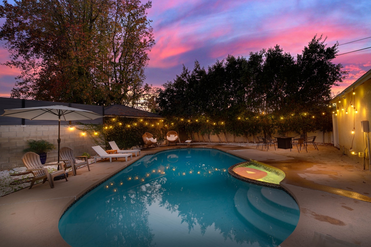 Unique, stylish, and luxe Villa located in the heart of Studio city Easy access to Westside, shopping & dining on the blvd. Views! Special features include a sparkling heated pool and spa, indoor and outdoor firepit, chef's kitchen, and spacious bedrooms with designer bathrooms. Hardwood Floors and recessed lighting as well as our seamless check-in via personalized key code. There is always someone available to help with questions to make your stay an effortless and magical experience!