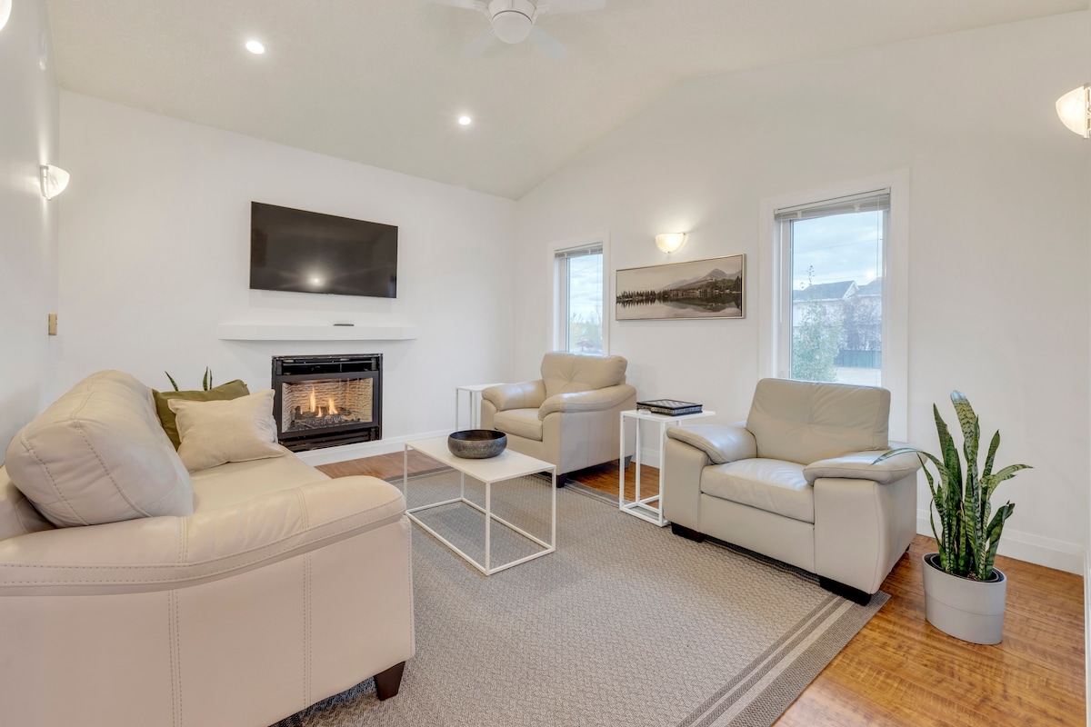 Welcome to our spa-inspired home away from home in North Edmonton. Our 3-bedroom spacious home comes with a full kitchen, 2 spa-inspired full bathrooms, an indoor fireplace, and a large deck on the main floor overlooking a large backyard perfect for fresh air in the winter and gathering in the summer. Whether you start your day with a walk or trip to your local coffee shop, this home is designed for relaxation for couples, families, work trips, or extended stays.