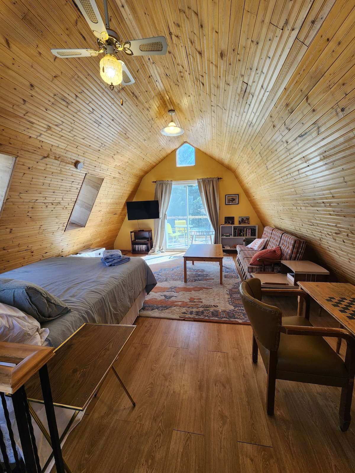 Escape the busy city, and take some time to relax, reflect and recharge at this unique and peaceful cabin located on a working farm. Enjoy the tranquility of farm life as you work on your art, relax on the deck or watch a movie on a rainy day. The Fairfolk Studio is located on the edge of Beaver Hills Dark Sky Preserve, so if you're into stargazing, bring along your telescope and set it up on the deck. The Fairfolk Studio is suitable for singles, couples or families with older children.