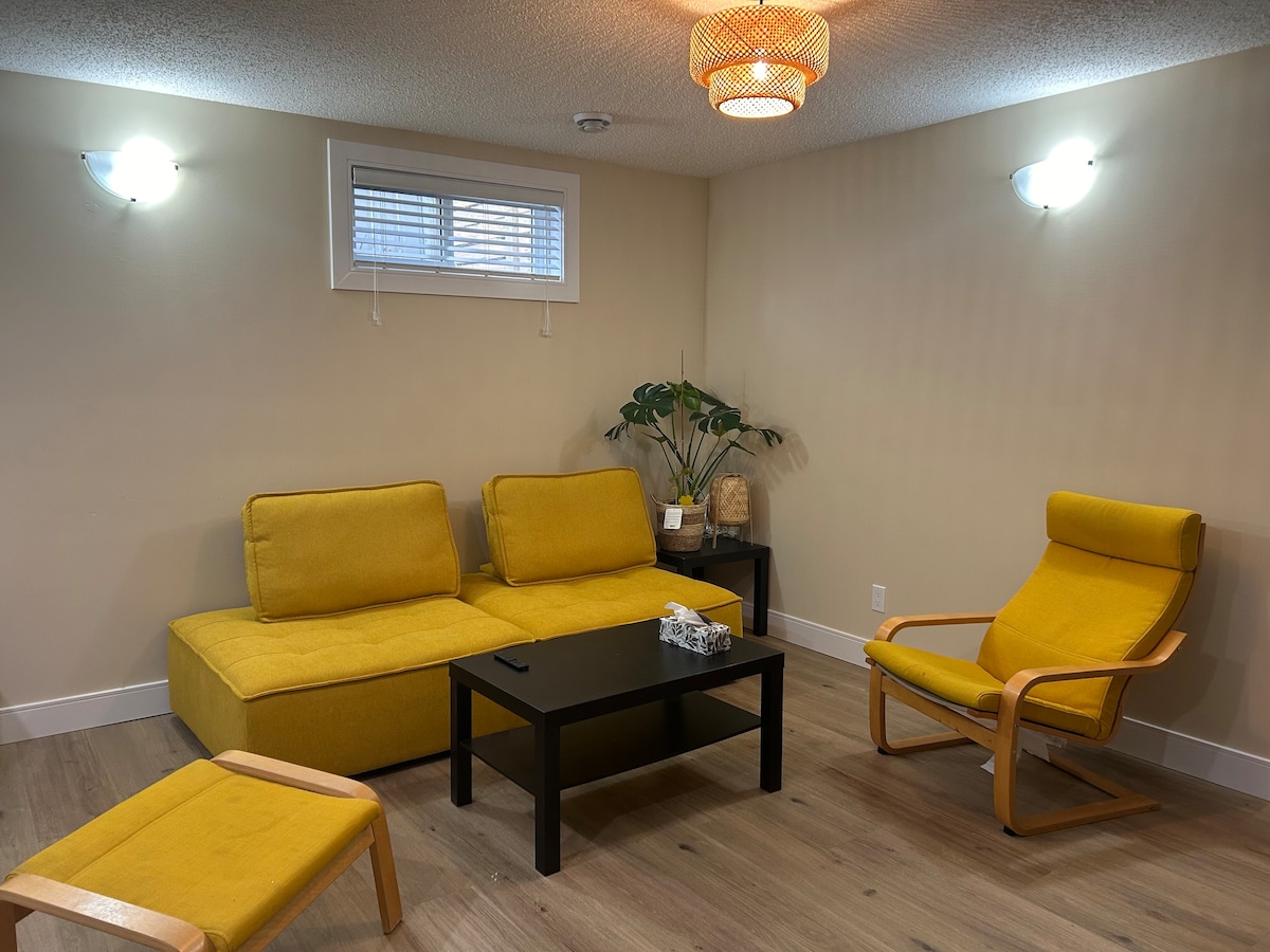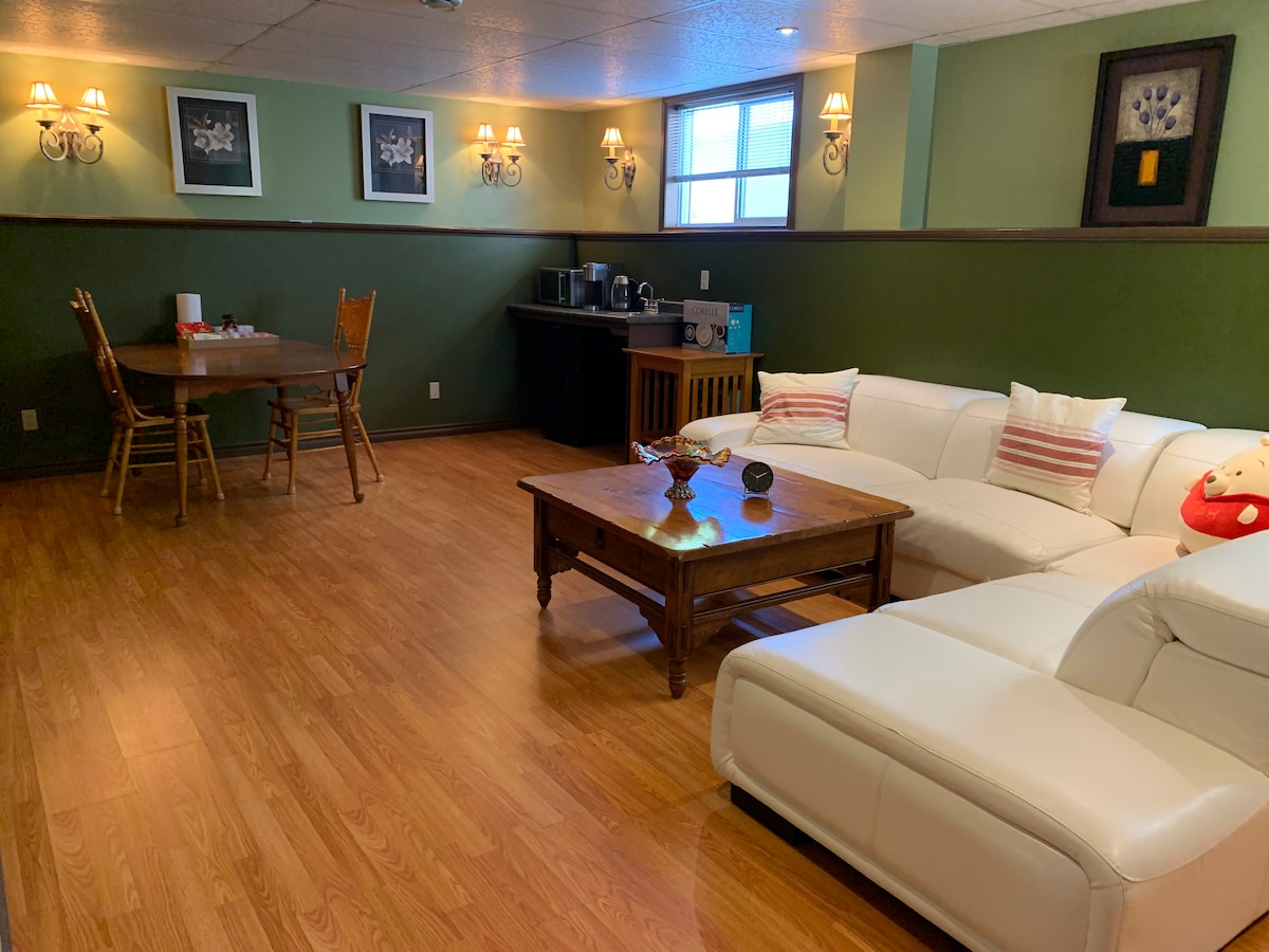 Welcome to your home away from home! Our beautiful 2-bed basement guest suite offers the perfect blend of comfort, style, and convenience. Whether you're in town for business or leisure, this peaceful retreat provides everything you need. The Space includes king bed and over 80 thoughtfully selected amenities across various areas, including a well equipped kitchen, comfortable living room, relaxing bedrooms, and a pristine bathroom. You'll feel right at home for both short and long stays