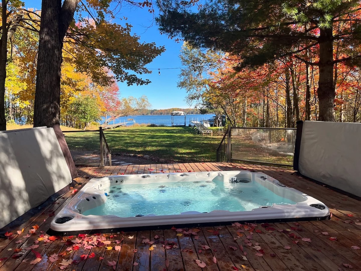 舒适的湖滨住宿|秋景、火坑、热水浴缸