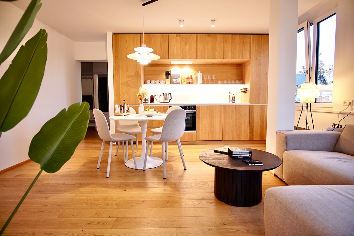 This modern and cozy apartment in Stuttgart West offers everything you need for a relaxed and pleasant stay. A spacious living- and dining room, two separate bedrooms, two big 55” Samsung smart TVs, Sonos sound system, and a very well equipped kitchen. The apartment is the ideal starting point to discover Stuttgart. Anything you need is just around the block: train and bus stations, grocery stores, coffee shops, restaurants and bars.