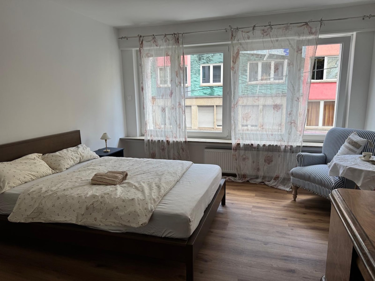 2 rooms, bathroom. Our vacation apartment is located in the Stuttgart district "Bad Cannstatt", in a quiet residential area. Our vacation apartment was renovated and refurnished in 2020 and 2023! The residential building from 1936 was completely renovated between 2014 and 2018. The vacation apartment is located on the garden floor, with access to the garden terrace and its own entrance. A covered outdoor seating area and large garden with terrace invites you to relaxed, enjoyable times.
