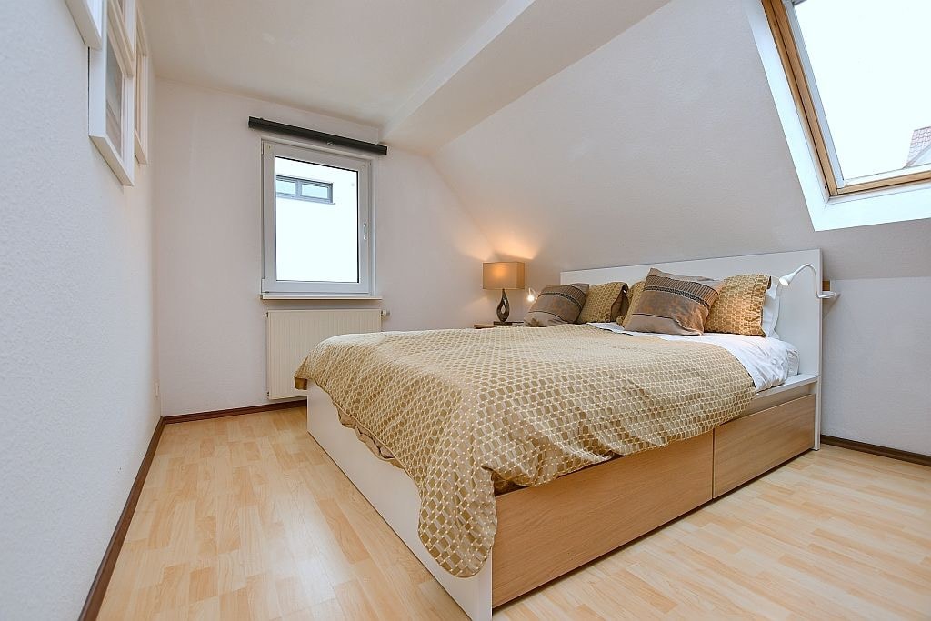Die 2-Zimmer-Wohnung befindet sich im 1. Obergeschoss, ist ca. 42qm groß und verfügt über ein Wohnzimmer, Schlafzimmer, eine separate Küche sowie ein Badezimmer mit Badewanne. Die Wohnung ist frisch renoviert und komplett hochwertig ausgestattet. Bei Bedarf können Waschmaschine und Trockner im Keller kostenfrei* mit benutz werden. Im Sommer steht auch der Garten für eine Mitbenutzung zur Verfügung.