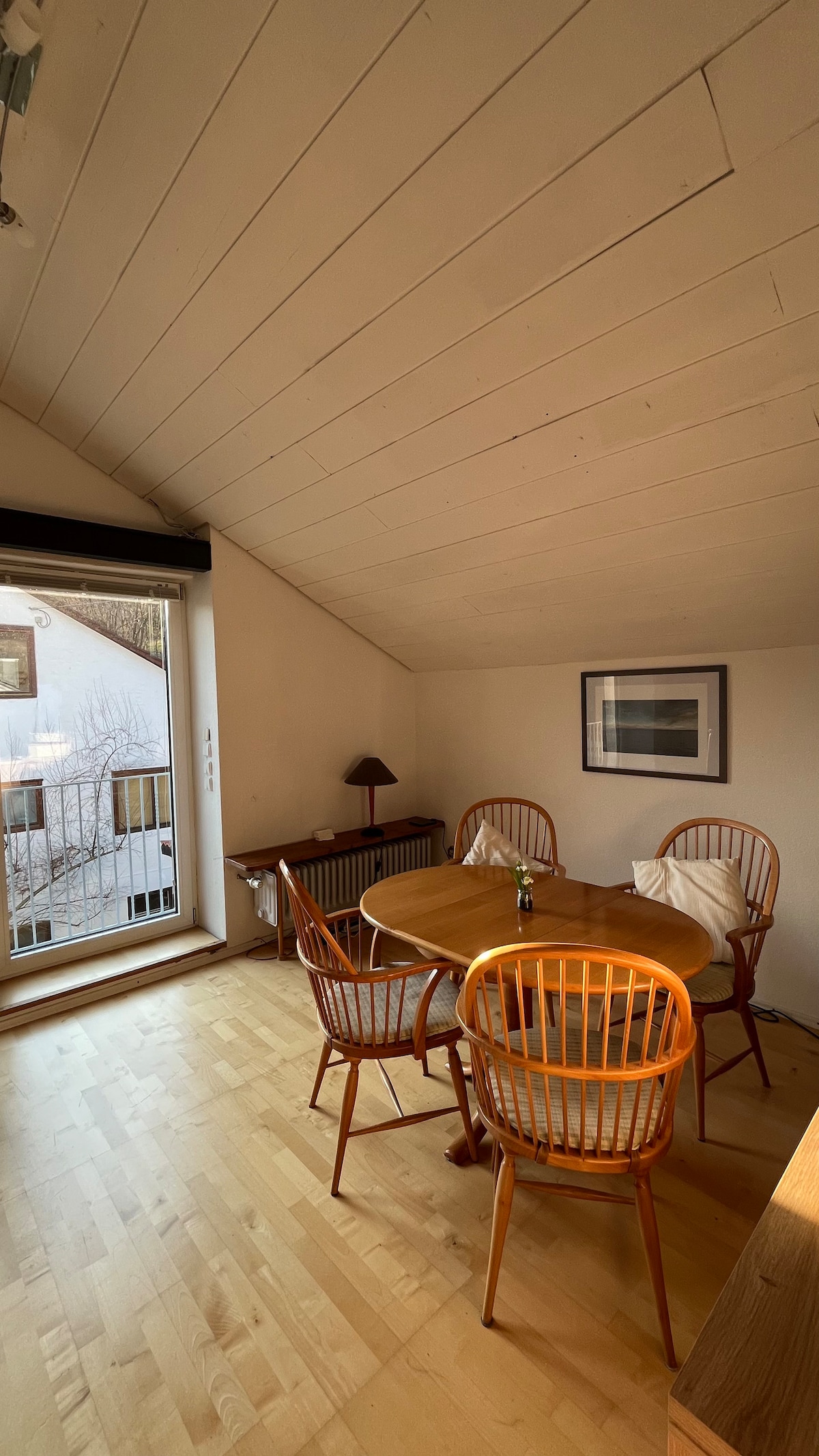 漂亮的小阁楼公寓,配有停车位、厨房等。