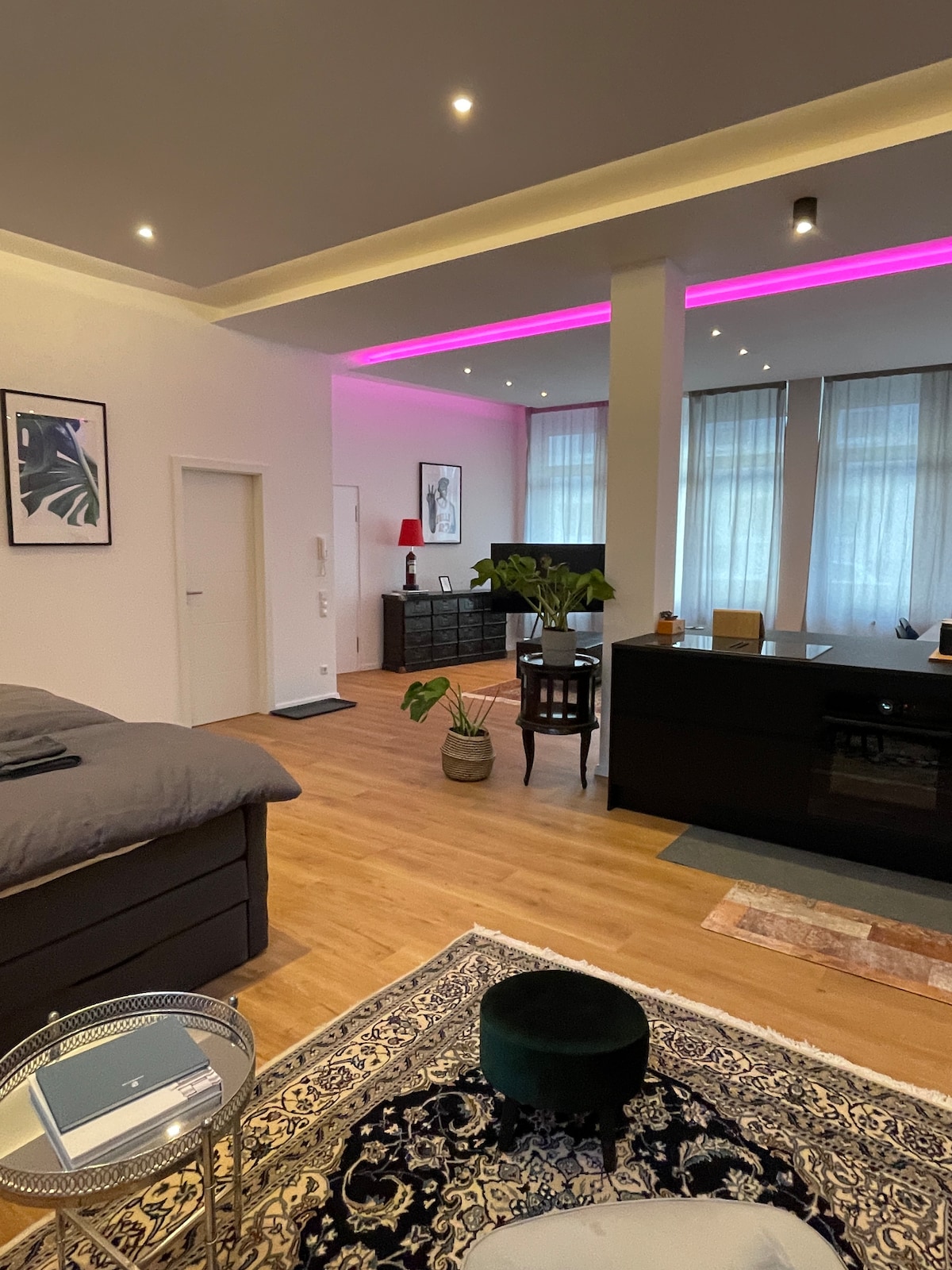 Willkommen im stilvollen Rückzugsort! Dieses großzügige 80 m² Design-Loft vereint modernen Luxus mit gemütlichem Wohngefühl, perfekt für Wohnen, Arbeiten oder Entspannen. 🏡 Offener Grundriss für ein einzigartiges Wohnambiente 🍽 Designer-Küche – voll ausgestattet 🛋 Stilvolle Designer-Möbel in zeitlosem, puristischem Look 📶 High-Speed-WLAN – ideal für HomeOffice oder Streaming Buche jetzt dein einzigartiges Loft-Erlebnis und genieße Komfort, Design & beste Lage in Stuttgart West!