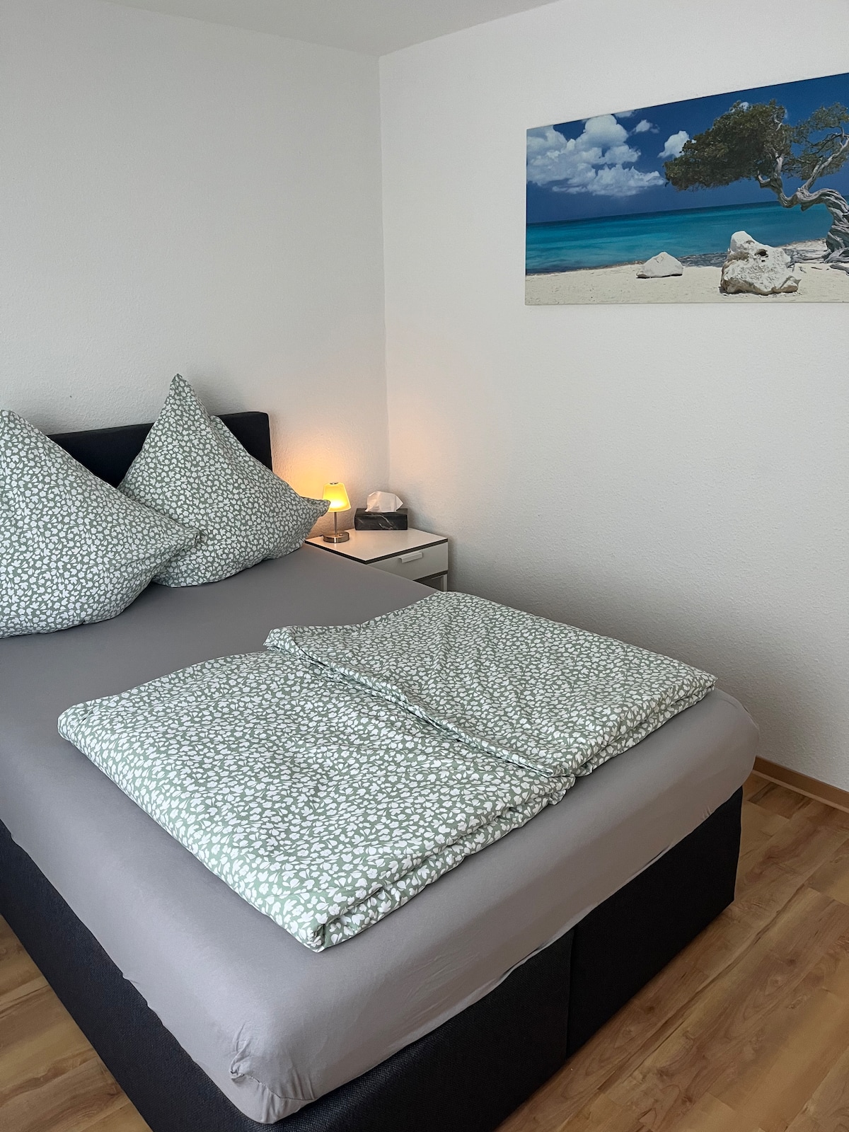 Die 2-Zimmer-Wohnung befindet sich im 1. Obergeschoss, ist ca. 42qm groß und verfügt über ein Wohnzimmer, Schlafzimmer, eine separate Küche sowie ein Badezimmer mit Badewanne. Die Wohnung ist frisch renoviert und komplett hochwertig ausgestattet. Bei Bedarf können Waschmaschine und Trockner im Keller kostenfrei* mit benutz werden. Im Sommer steht auch der Garten für eine Mitbenutzung zur Verfügung.