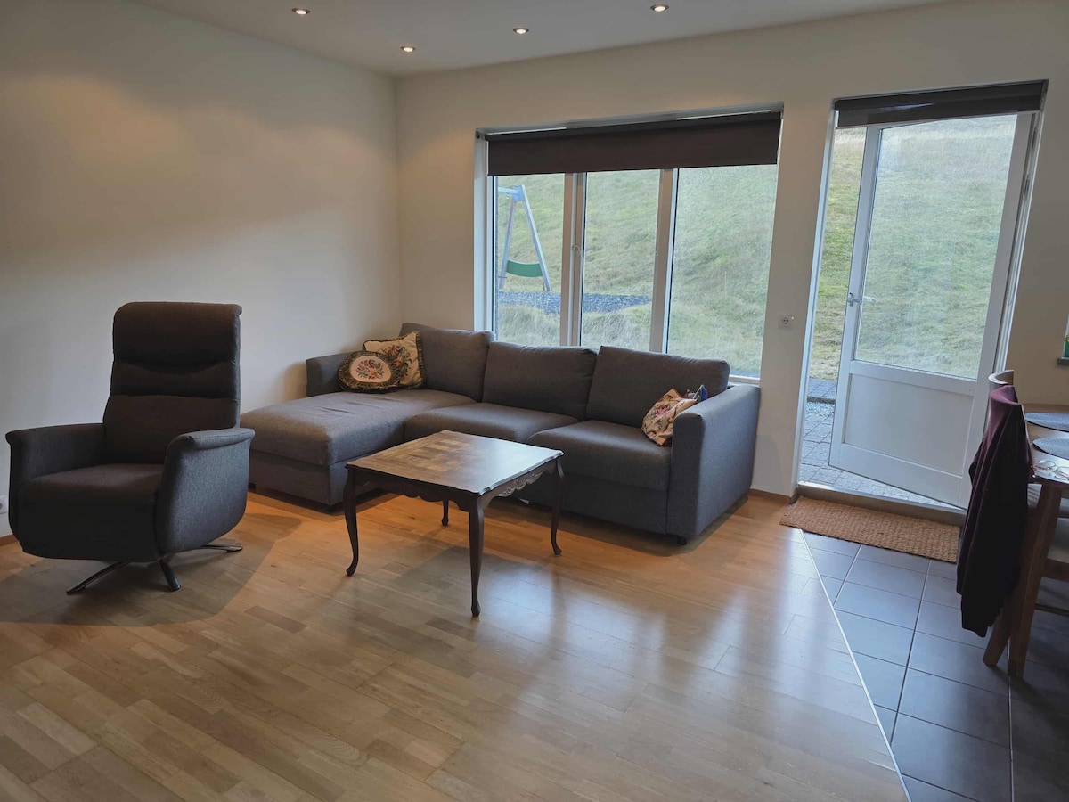 Charming apartament in the picturesque fishing village of Grundarfjörður. Maria's apartament has two bedrooms( one room has a twin bed and the other has one queen size bed) with fully furnished kitchen and bathroom. Comfortable seating area with a sofa and a dining table. In the center of Grundarfjörður next to the harbour itself.