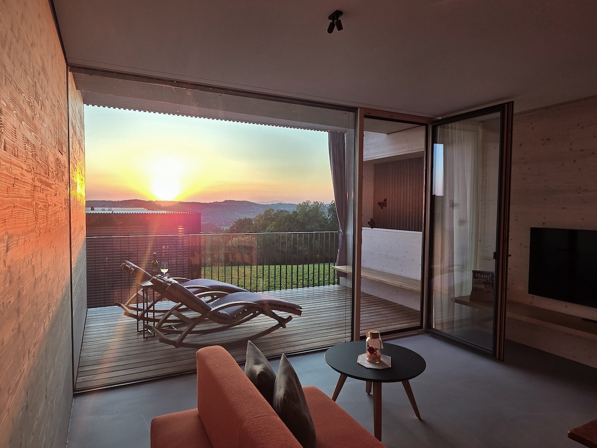 Steirisches Vulkanland. Durchdachte Architektur. Atemberaubende Sonnenuntergänge. Die Stock & Stein Lodges sind Ihr persönlicher Sehnsuchtsort, wo Sie einfach mal die Perspektive wechseln können. Hier verschmelzen modernes Design, hochwertige Naturmaterialien und Ideenreichtum zu einem REICH der Ausgelassenheit, Geborgenheit und Privatsphäre. Jede Lodge hat einen ganz eigenen Stil und ist ein ausgeklügeltes Unikat.