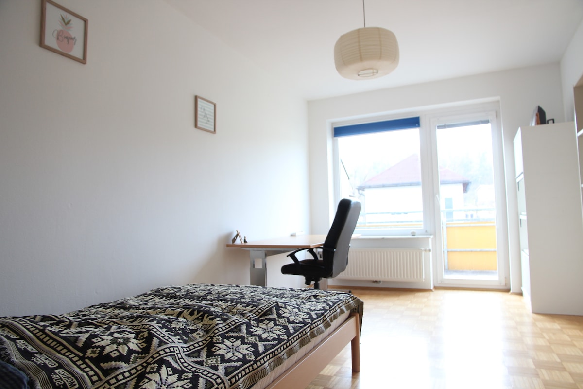 Zimmer mit Doppelbett und Bad am Stadtrand von Klagenfurt. Mitbenützung von Küche, Wohnbereich und Garten möglich. Überdachter Parkplatz, Fahrrad und Busanbindung vorhanden.
