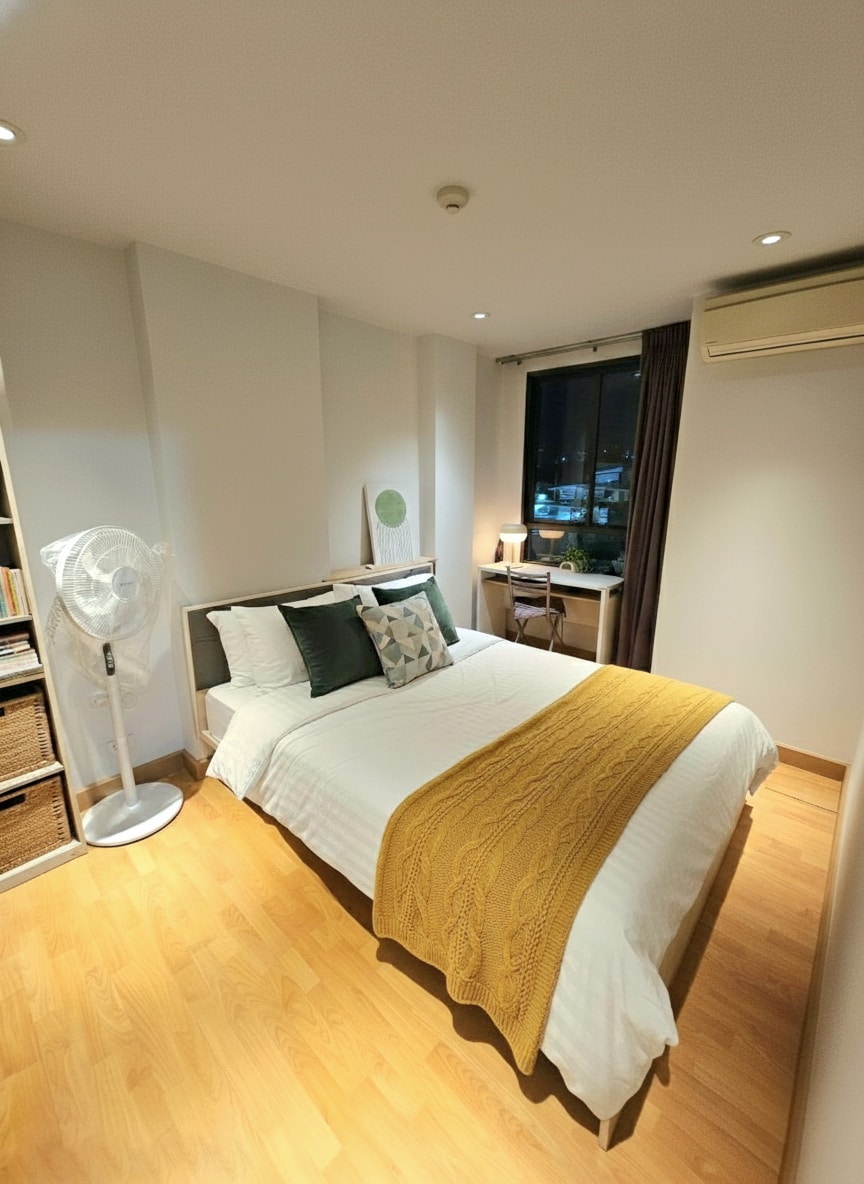 Experience a comfortable stay in this fully furnished 1-bedroom condo (30 sqm) on the 6th floor. Located just 10min walk from Onnut BTS, Tesco Lotus, and Century Mall, with vibrant street food and the new Onnut Night Market nearby. Enjoy amenities like air conditioning, TV, high-speed WiFi, washing machine, and a fully equipped kitchen. Free access to a swimming pool, gym, and 24/7 building security. All bill are included (water, internet, electricity).