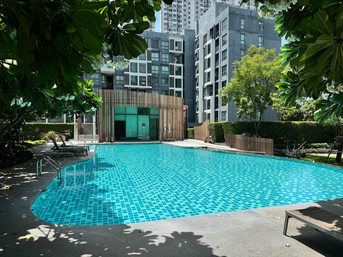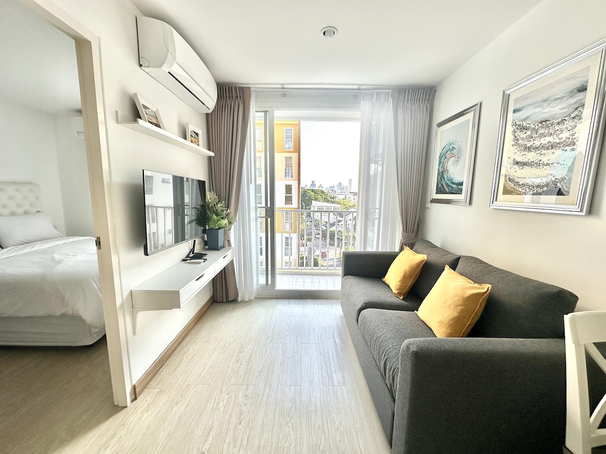 Welcome to your cozy urban retreat! This modern classy apartment offers the perfect blend of comfort and convenience. Chill out in the living room or bedroom, or cook up a storm in a fully equipped kitchen with an electric stove and microwave. With TV for entertainment and gorgeous views of the city skyline , it is our hope that you will feel utmost comfortable. Enjoy easy access to building amenities with the On Nut BTS and major shopping hubs like Tesco Lotus and Big C nearby.