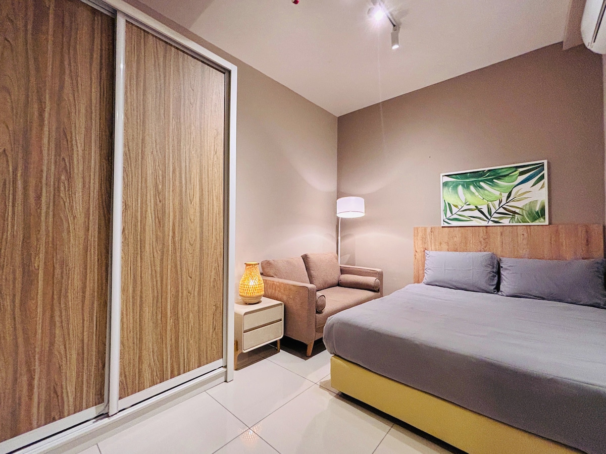 Relax in our cozy, newly renovated Chic & Stylish Studio at HighPark Suites! This modern retreat offers a queen bed, a Smart TV, and a fully equipped kitchen. Enjoy lake views while unwinding in modern-style facilities, including a pool, gym, and jogging track. Just 5 minutes from Paradigm Mall—your perfect staycation awaits.