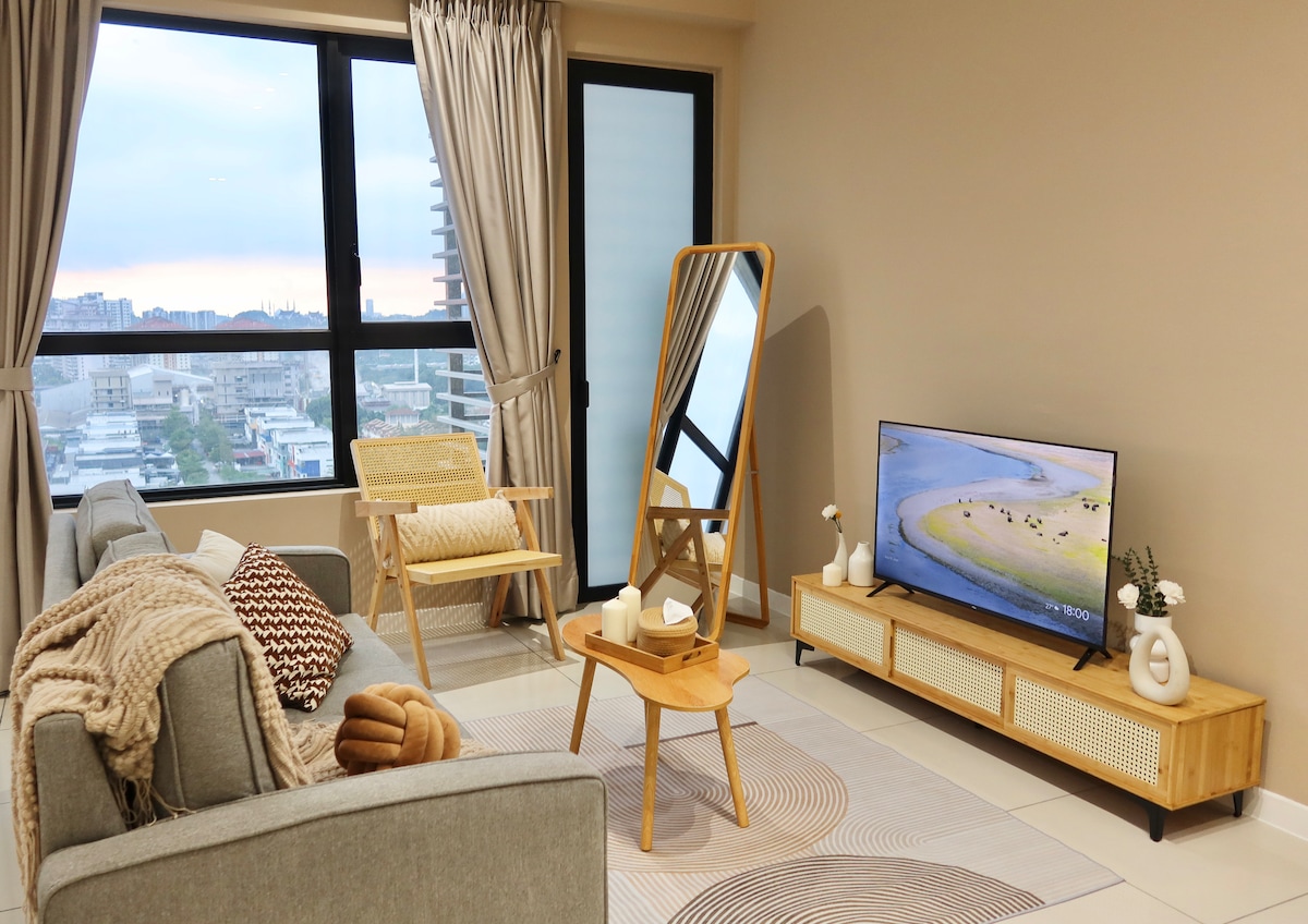 ✨ Brand New Studio at MOSSAZ – Sky Pool, Netflix, Ample Parking & WiFi! ✨ Stay in our brand-new studio condo (344 sq ft) at MOSSAZ! Perfect for couples or small groups. Features: Queen bed + Sofa bed (blanket is not provided for the sofa bed) Compact kitchenette (microwave, no stove) 43" SMART TV with Netflix 100 Mbps WiFi Stunning infinity pool (39th floor) Near One Utama Mall Quiet, cozy, and budget-friendly! No smoking/pets. Quiet hours: 10 PM–9 AM. Book now! 🌟