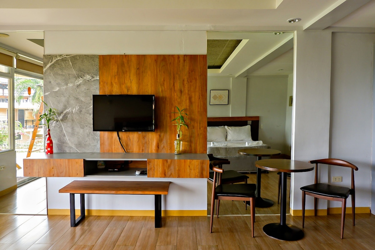 Welcome to your serene escape from the hectic city life. Only 45 minutes from Clark Airport, 15 minutes from the beaches and 5 minutes from Royal Duty Free, this cozy 30 square meter suite opens up to a patio with an outdoor bathtub, barbecue and dining area. NOTABLE FEATURES: >Comfy beds >Outdoor Tub >Hot shower >Backyard for Pets >WiFi >Grill >Outdoor dining >Hammock >Kitchenette >Gated village >24hr security >Air-Con >Pet friendly* >Extra fees after first 2 guests *w/ feed user ini it