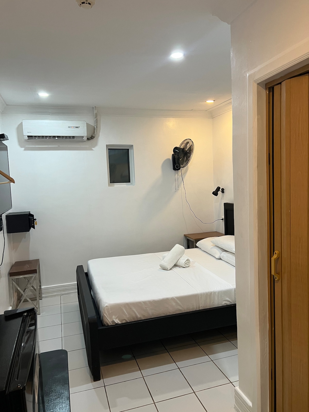1 bed 1 comforter 2 pillows 2 smart tv 1 couch 1 coffee table with chairs 1 personal ref with terrace with shower heater wifi elevator Shampoo and body wash *Parking is on a first come, first served basis. Not guaranteed *free use of water dispenser and microwave *1 set of cooking materials with charge NOTE: THERE IS NO KITCHEN SINK IN THE ROOM Cooking is not Allowed