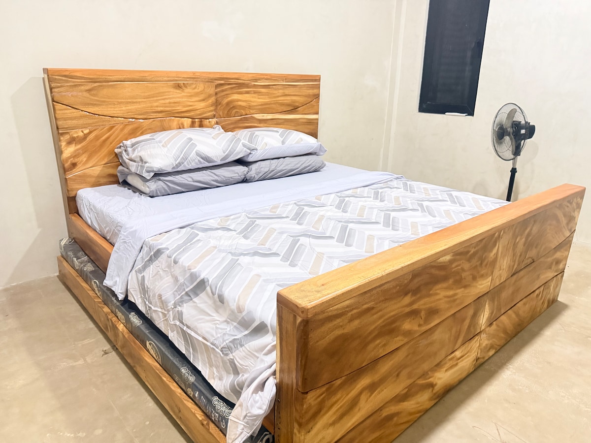 A 8x8ft loft style fan kubo built near the river. Its a basic fan kubo where we provide mostly what you’ll be needing during your stay: one fan, a mattress, a pillow, a blanket and a towel. No wifi and signal is not stable in the area. We have 3 common toilets and 2 baths all separated and located at the main part of the camp. There are 3 outdoor shower as well. 1 toilet and 1 outdoor shower are located at the camp ground where the colored shack is located.