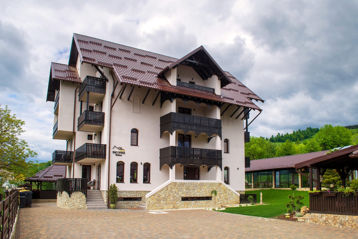 Situated just 3 km from Voronet Monastery, 5 km from Humor Monastery, 1 km from Soimu Sky Slope and offering access to all the other landmarks in the area, "Bucovina Residence & SPA" will always receive you with open arms, giving you the opportunity to discover the Bucovina landscapes. Our guesthouse is the ideal place for those who want to spend a few days in a relaxing, unpolluted environment, while enjoying the freshness of the mountain air. Always happy to receive guests!