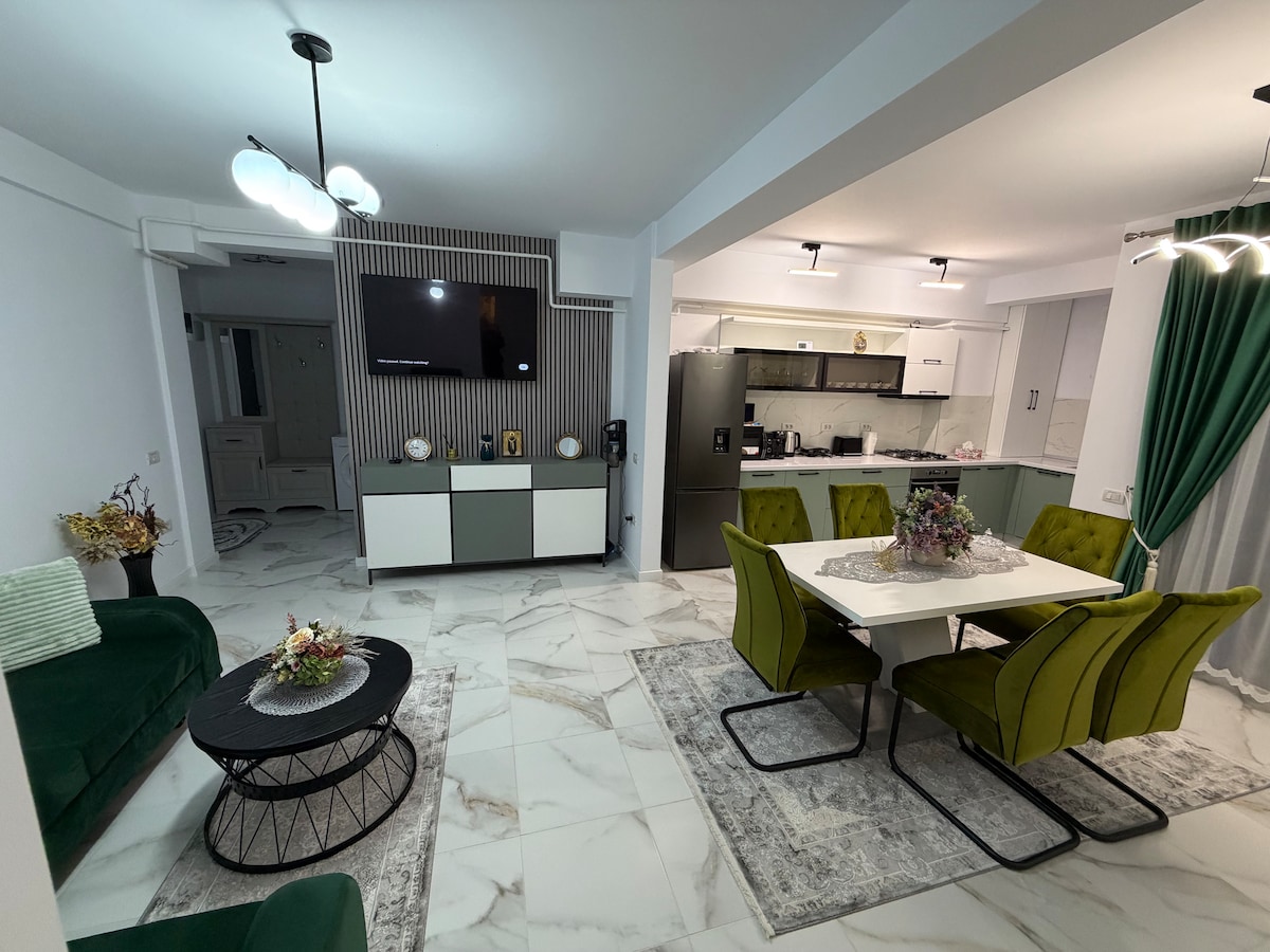 Apartament nou, modern, cu 2 dormitoare, complet utilat, situat central în Vatra Dornei. Oferă living confortabil, bucătărie complet echipată, baie modernă, Wi-Fi și TV. Ideal pentru familii sau grupuri de prieteni, cu acces rapid la restaurante, parcuri, pârtii de schi și atracțiile principale ale orașului. Confort și relaxare în orice sezon!