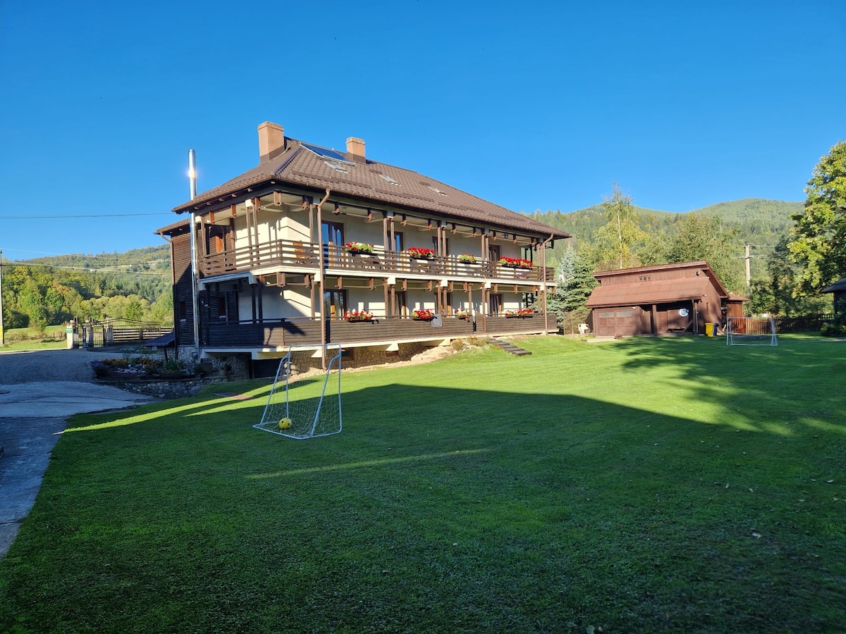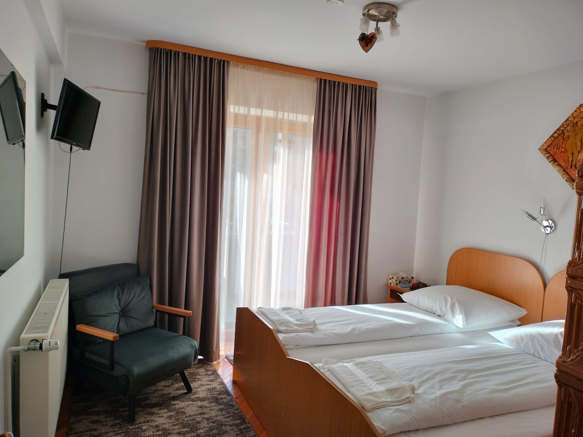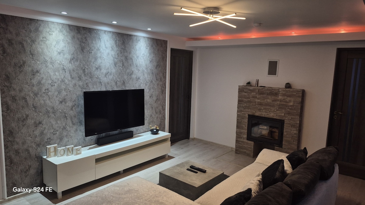 Welcome to our home! We are delighted to meet you. A rustic, wood-paneled, yet newly and modernly furnished apartment awaits you. The house is situated in a quiet and peaceful area, where you can hear the sound of the stream of water nearby flowing. It's only a 15 minute walk to the town center, 25 to the train station and about 5-7 minute walk to the Lidl store. Also, a 10-15 minute drive to the Rarau Ski Resort.