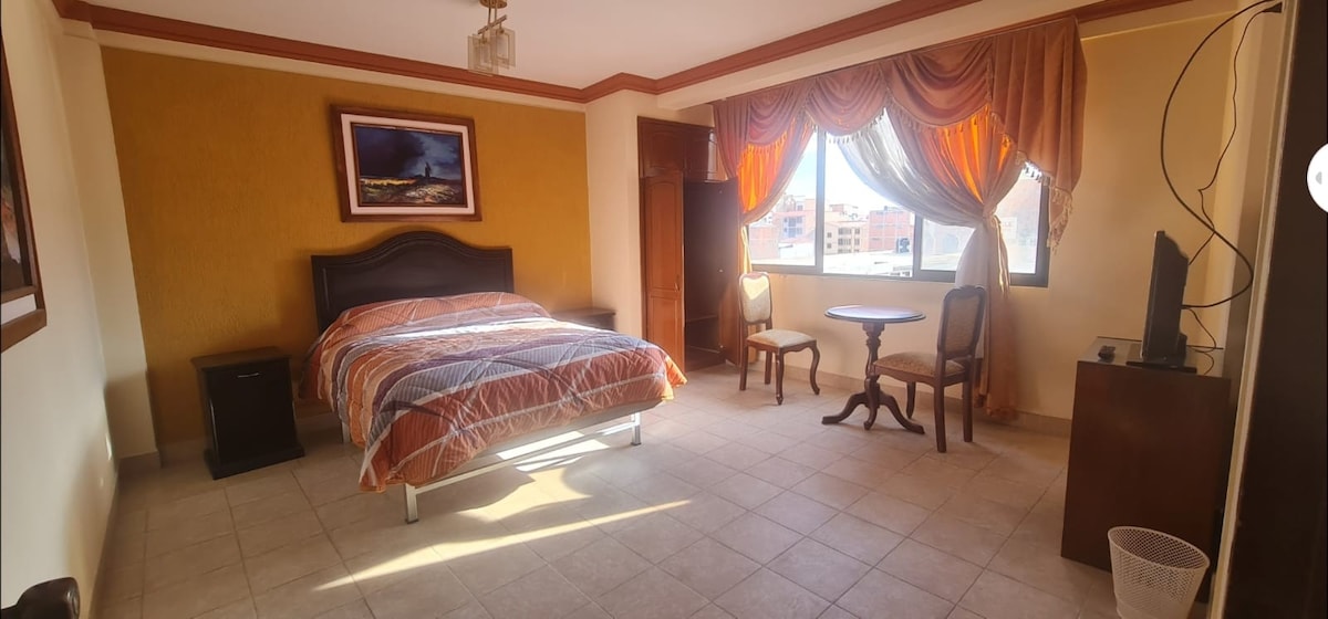One off the few colonial sytle recently renovated 4 Star hotels on the tha main plaza , bosting a variaty o room styles and a tempared lighting giving you the warm ambience that we show as Bolivian hosts including 24 hour reception.