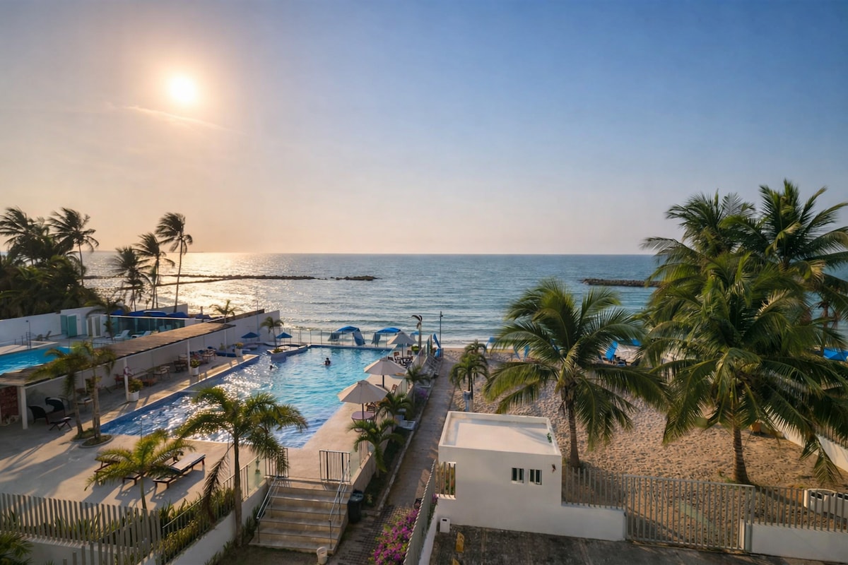 Apartamento amplio frente al mar en la primera ensenada de Coveñas, ideal para familias y grupos (hasta 12). Disfruta atardeceres desde el balcón grande y entra fácil con self check-in. Lo mejor del lugar (bullets): • 🌊 Beachfront: acceso a playa / primera línea de mar • 🌅 Balcón con vista al mar para atardeceres • 🔑 Self check-in con keypad (llegas sin complicaciones) • 🐾 Pet-welcoming (ducha y secador de pelo) • 🚗 Parqueadero gratis en el lugar  • 🧺 Lavadora-secadora disponible