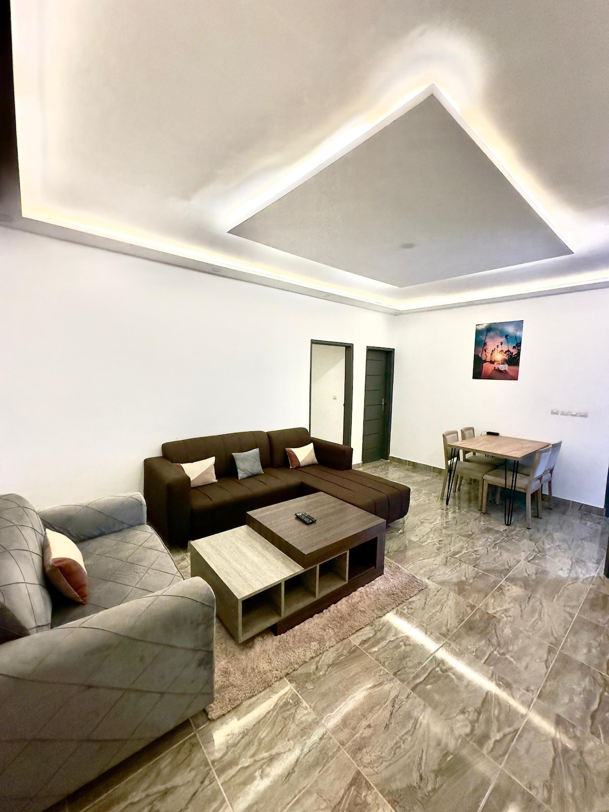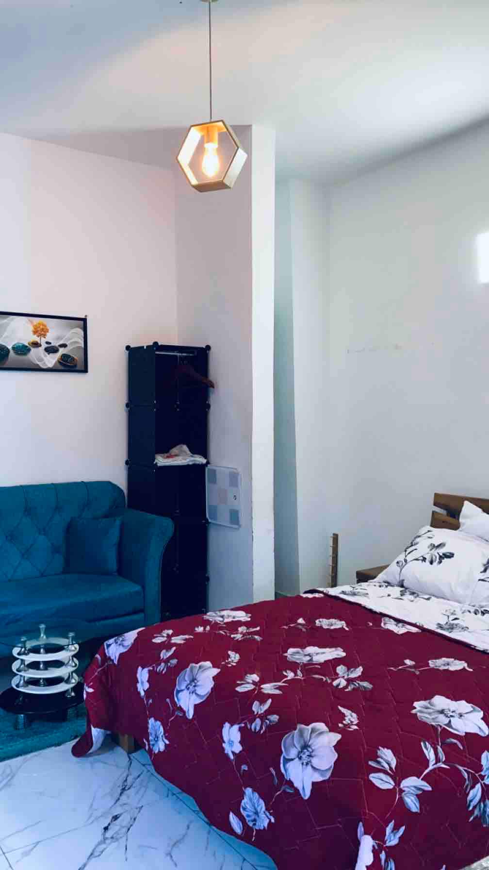 Bienvenue à Résidence HAYMES, Un appartement alliant élégance contemporaine, accents africains et haut de gamme. Niché au cœur du quartier calme de Mockeyville, ce cocon d’une chambre vous offre l’intimité d’un chez-soi, et le raffinement d’un lieu pensé pour se ressourcer. Style & Ambiance Décoration afro-minimaliste, lignes épurées, matières naturelles, objets d’art et mobilier recherchés pour profiter des chaleureuses journées, et des douces soirées bassamoises...